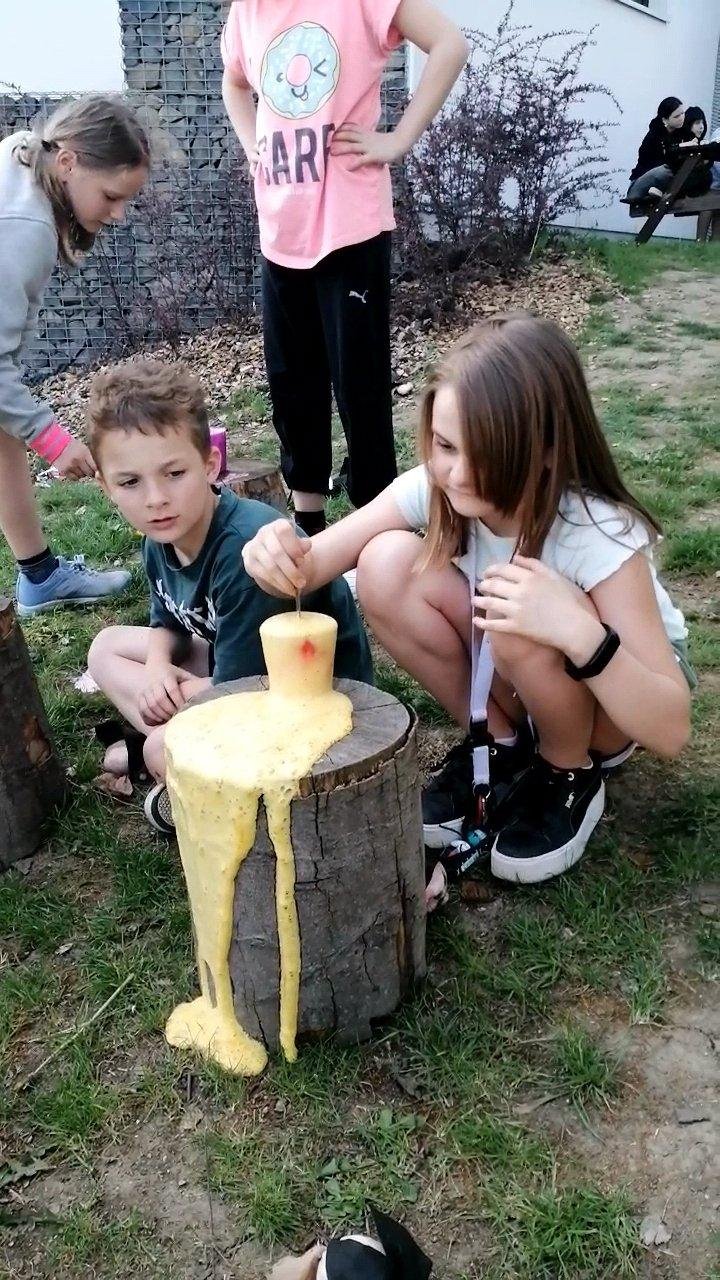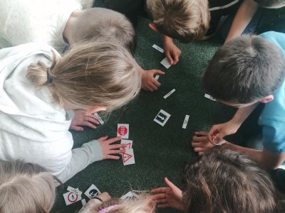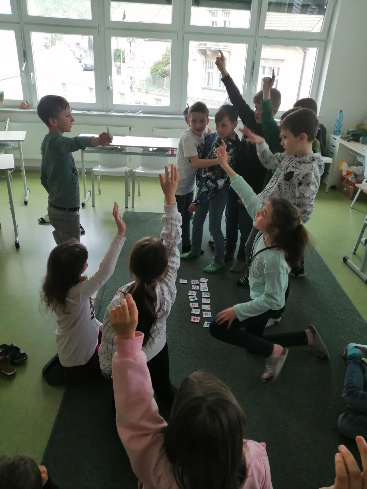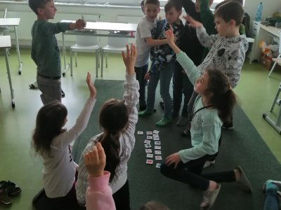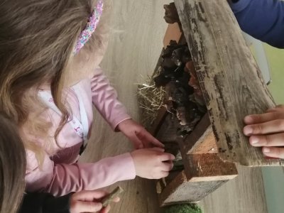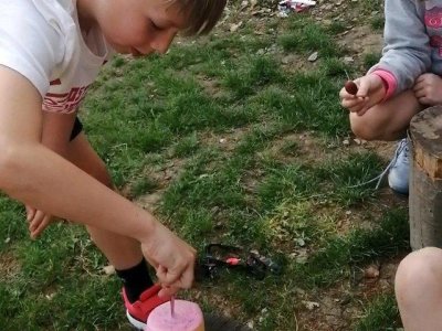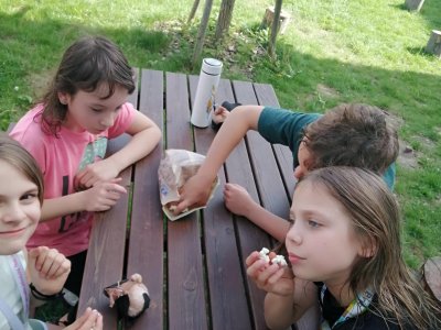 Učíme se dopravní značky a povídáme si o bezpečnosti na silnici. Sázíme, zahradničíme a zkoumáme hmyz. Malujeme brouky a vyrábíme jarní květiny. Užíváme si vycházky do přírody. Oslavujeme Den Země, stavíme domeček pro hmyz. Vaříme kouzelné lektvary a vyrábíme malé čarodějnice z látky.
