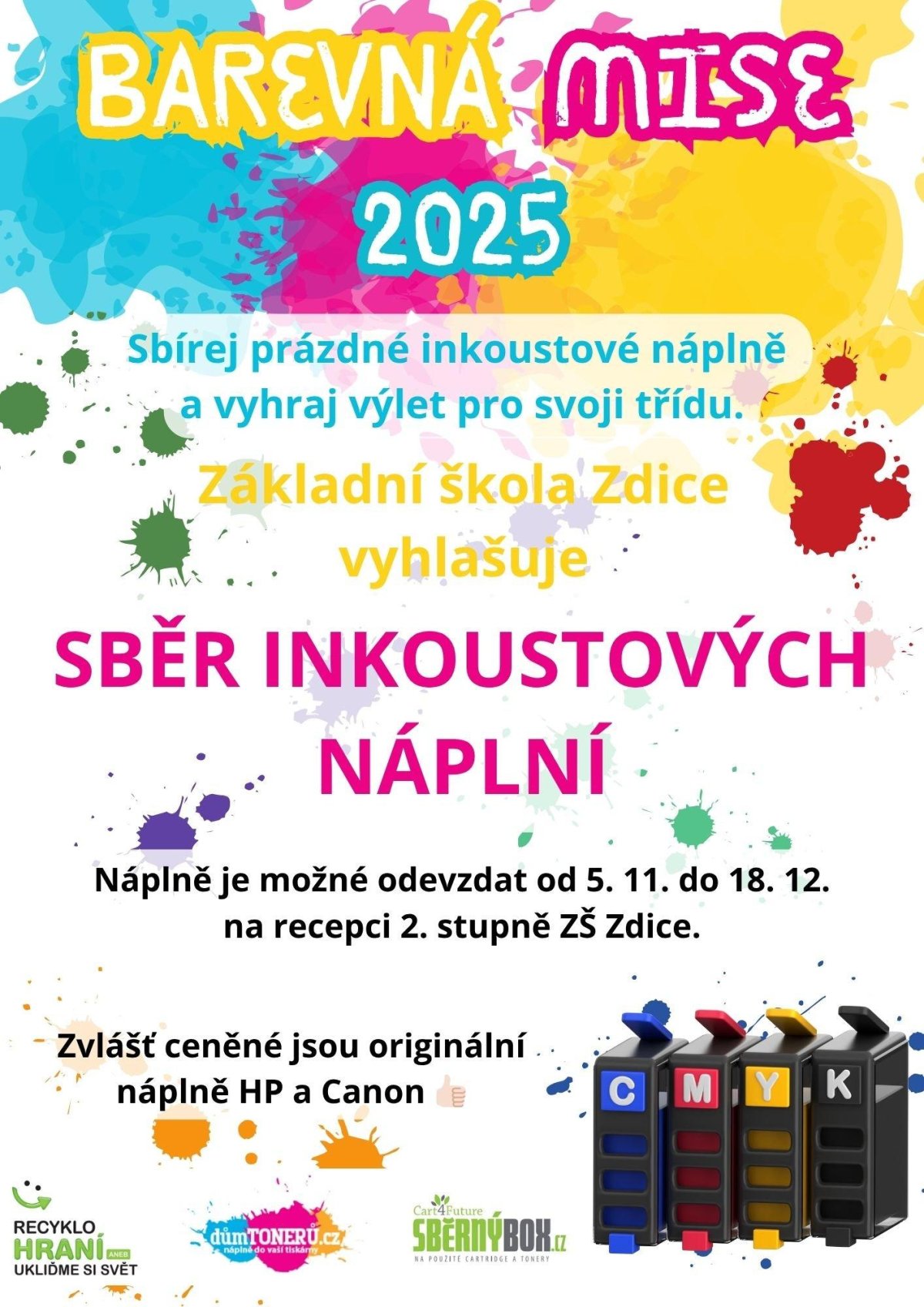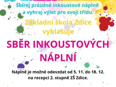Základní škola Zdice vyhlašuje sběr inkoustových náplní. Akce probíhá v rámci projektu Recyklohraní, do kterého je škola přihlášena.