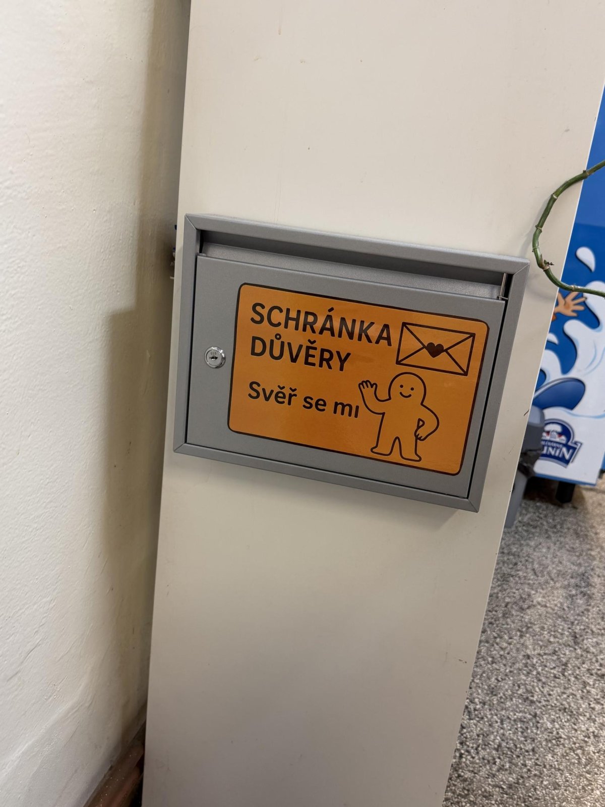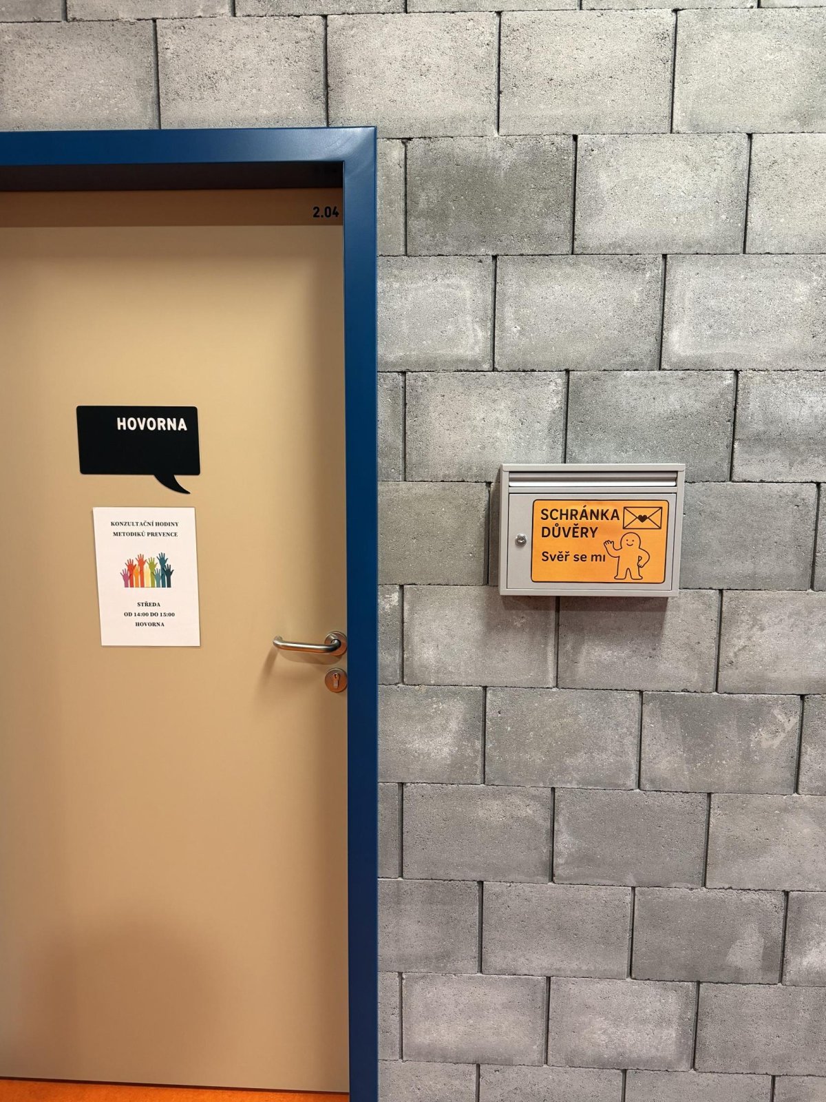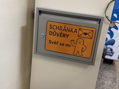 od října jsme ve škole zprovoznili dvě schránky důvěry. Jedna je u konzultační místnosti v prvním patře nové budovy, druhá proti bustě Komenského před vstupem do jídelny. Můžete sem vhazovat vzkazy, sdělení, nápady, trápení, žádosti o pomoc. Schránky vybírají naše metodičky prevence a ty se Vašimi vzkazy budou zabývat. Můžete se podepsat, pak bude možno s Vámi mluvit, nebo se podepisovat nemusíte.
