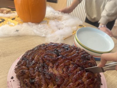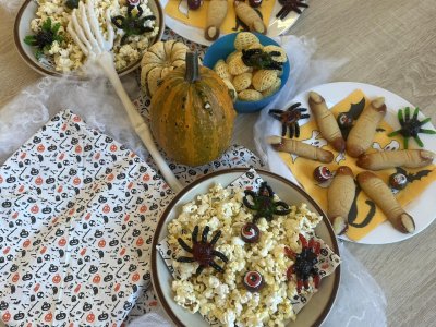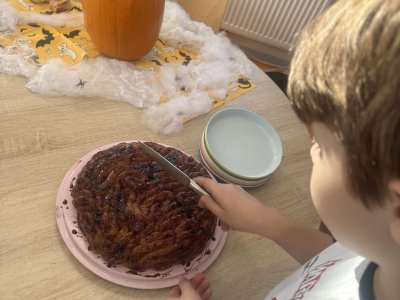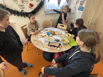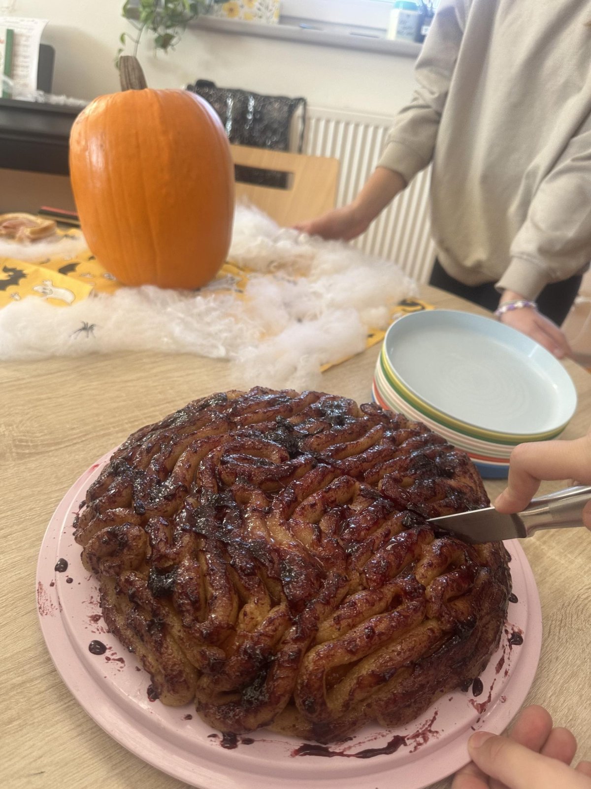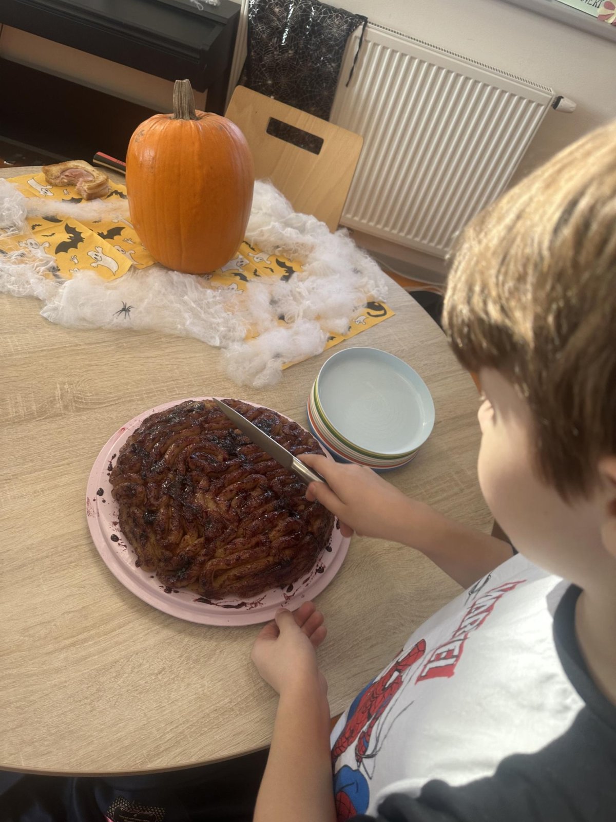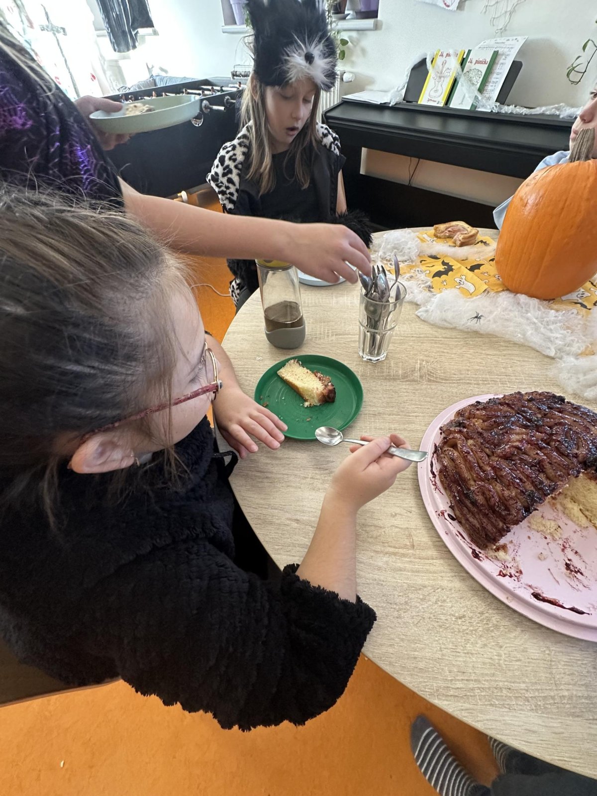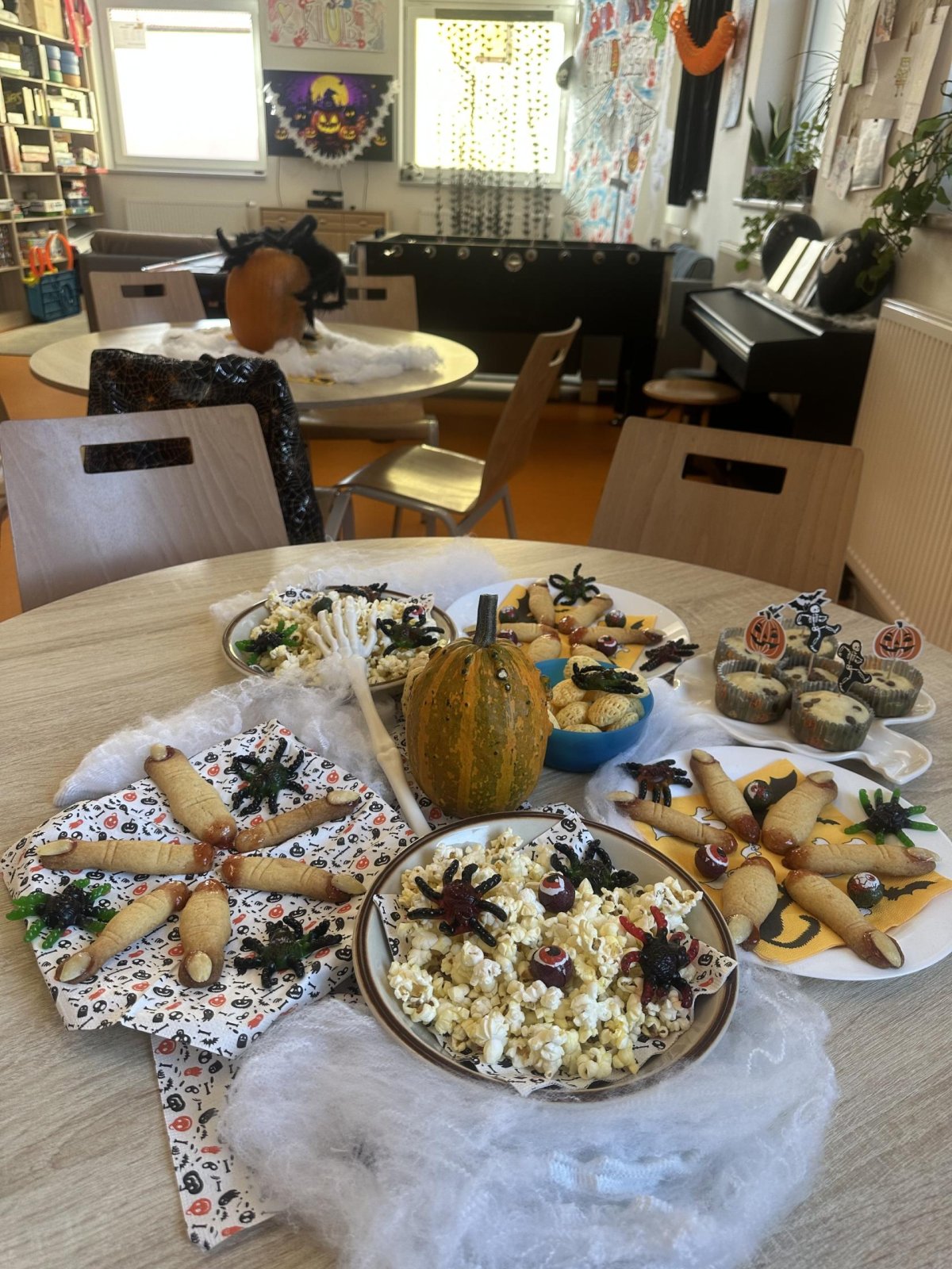 Nechybělo ani občerstvení, které děti a rodiče přinesli – na stolech se objevilo mnoho sladkých i slaných jídel, včetně originálního dortu ve tvaru mozku.