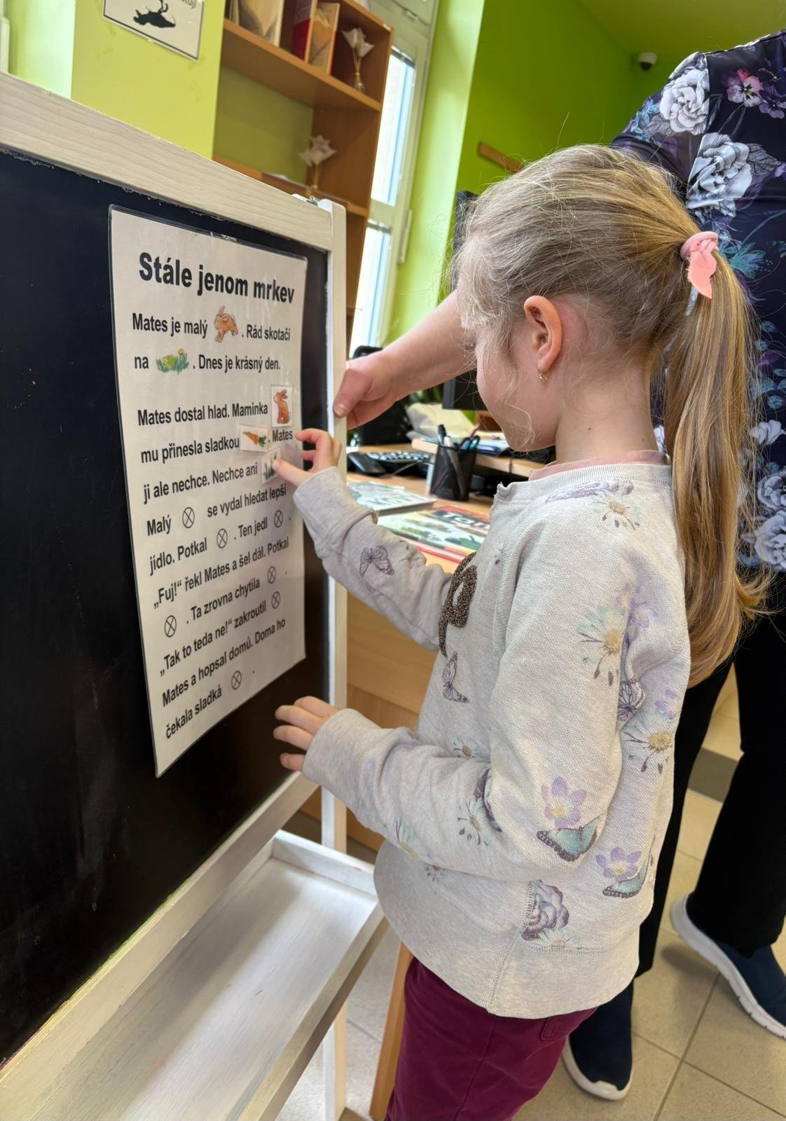 Týmová spolupráce oveček, medvědů a zajíců při písmenkovém pexesu.