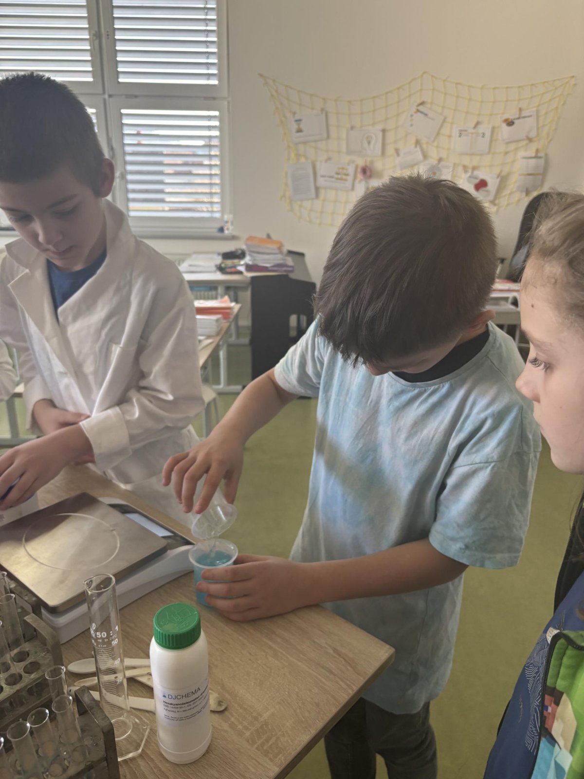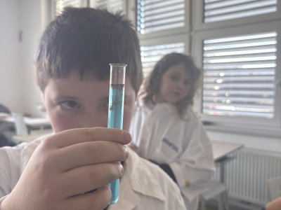 Na přírodovědném kroužku jsme si ukázali, jak může vypadat buňka. Po kápnutí roztoku do jiného prostředí jsme vytvořili měchýřek, který se zvětšoval, rostl. Nakonec se praskl. Žáci svá pozorování zaznamenali do PL.