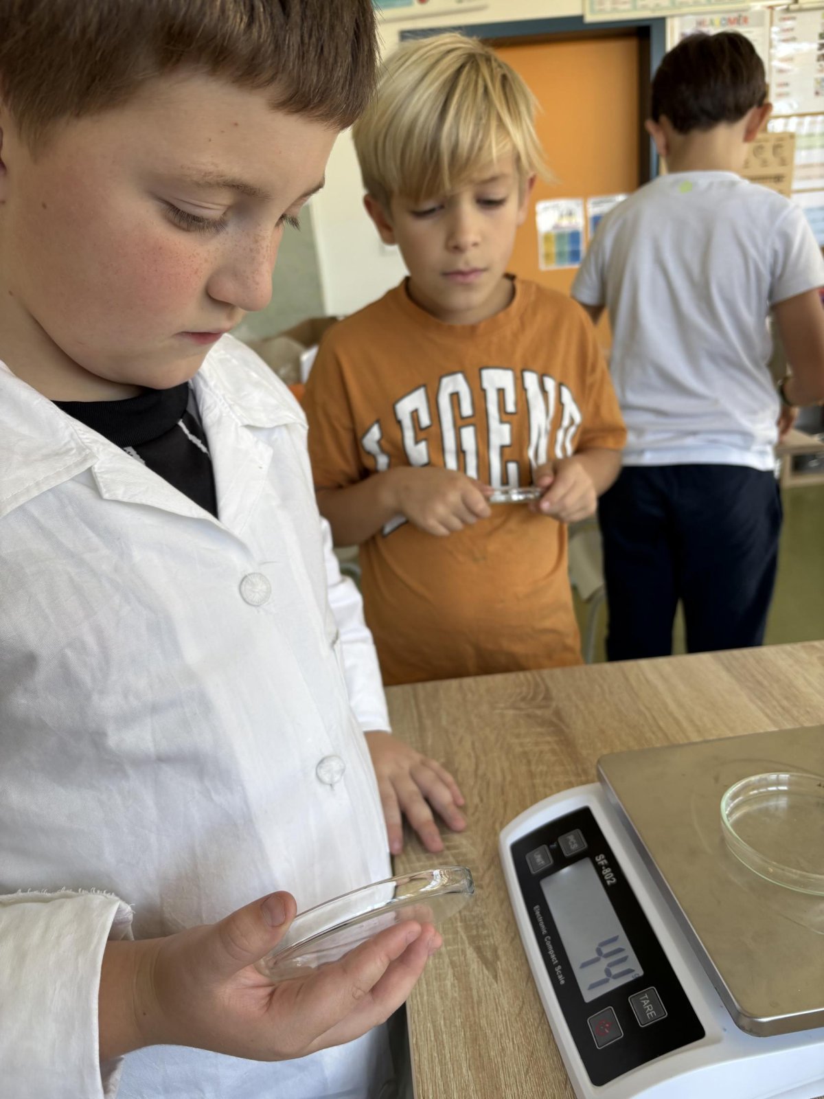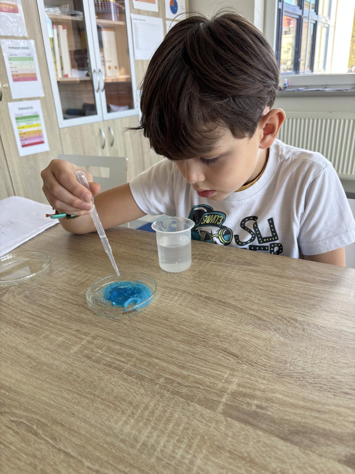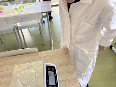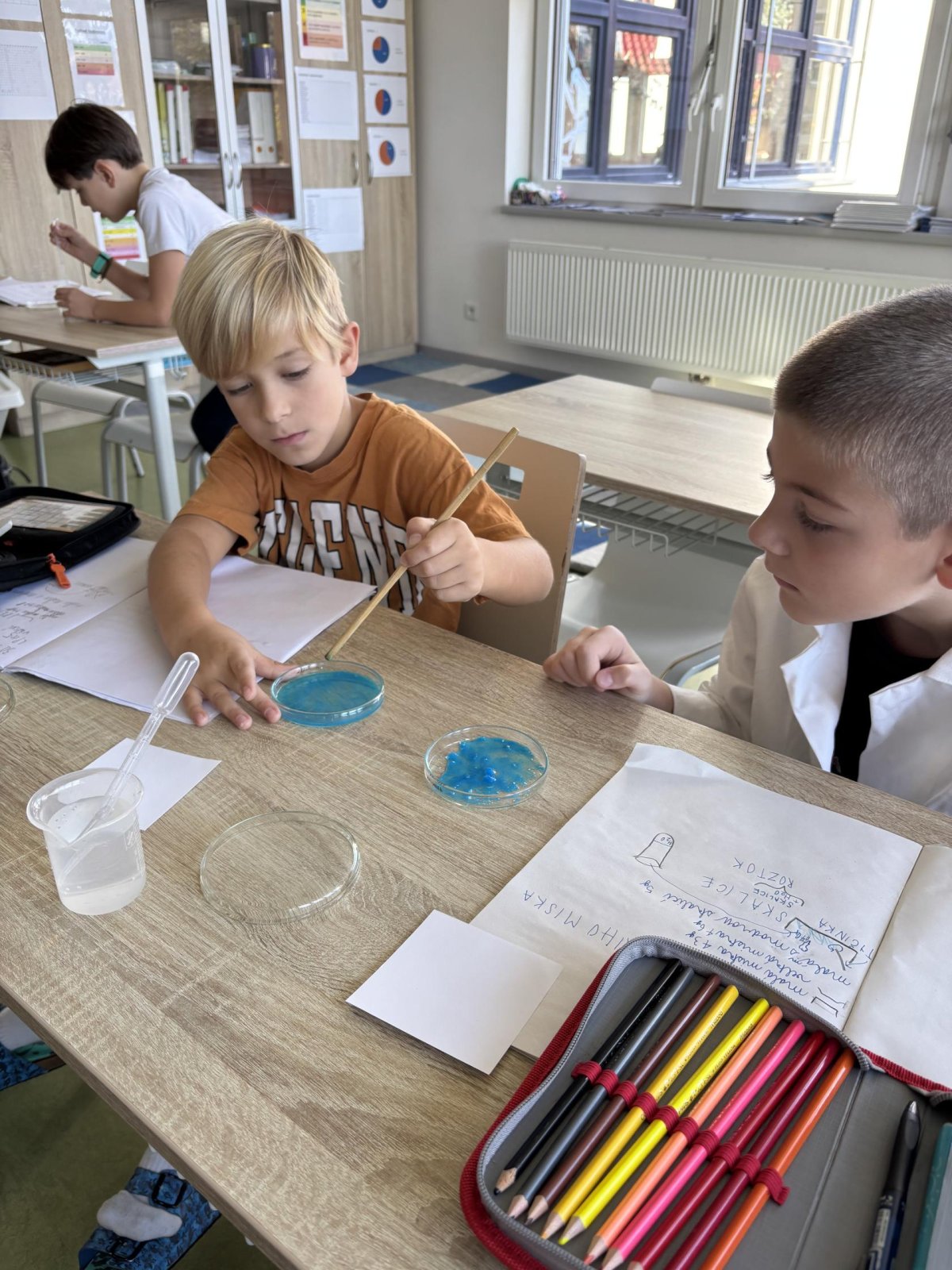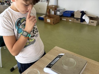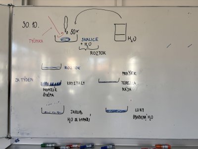 Na přírodovědném kroužku jsme pracovali s váhou. Nejprve jsme se naučili, jak správně postupovat při vážení. Následně jsme zkoušeli odhadnout, kolik g váží materiál. Seznámili jsme se s chemickým nádobím - Petriho miskou. Nakonec jsme odvažovali jednu lžičku skalice modré a následně vytvořili roztok. Zformulovali jsme hypotézu, jak bude vypadat Petriho miska za týden. Na příštím přírodovědném kroužku navrhovanou hypotézu potvrdíme či vyvrátíme.