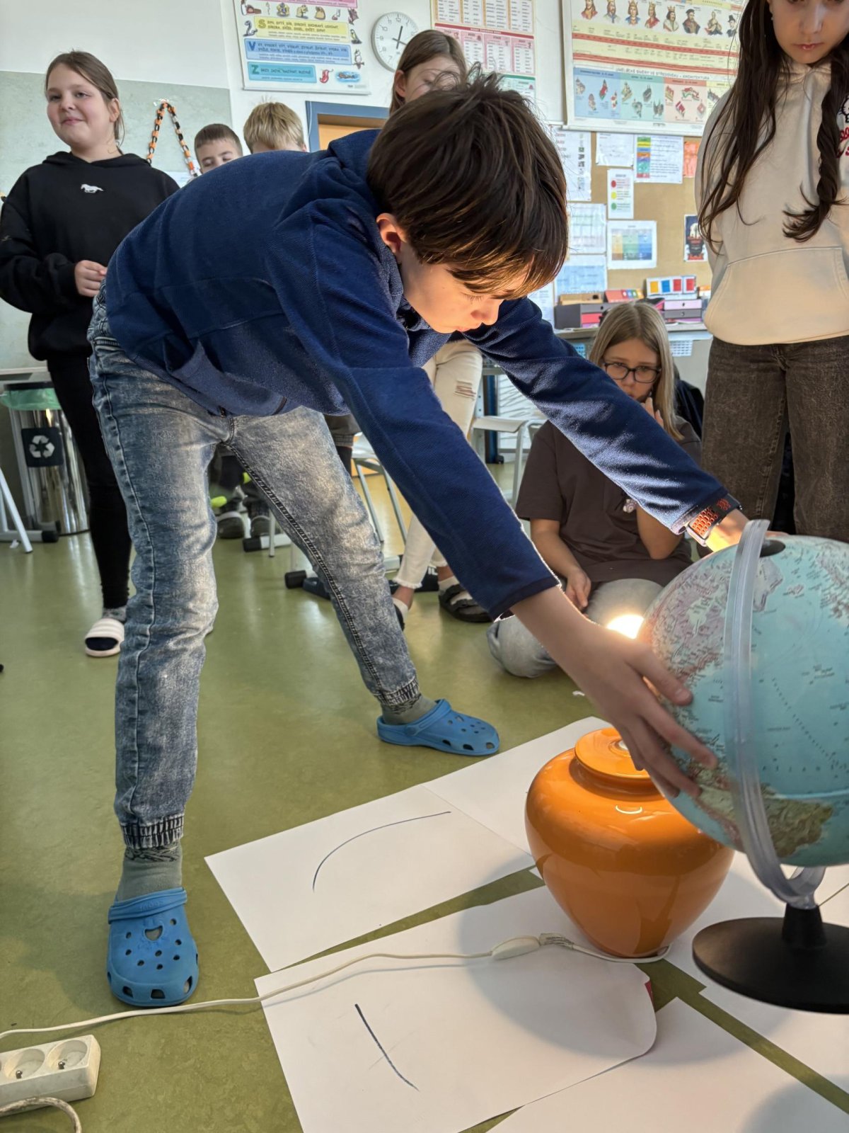 Kam dopadne nejvíce slunečního záření? To je jedna z výzkumných otázek, které si Vlčata položila při zkoumání podnebných pásů. Pomocí experimentu nacházela kýžené odpovědi.