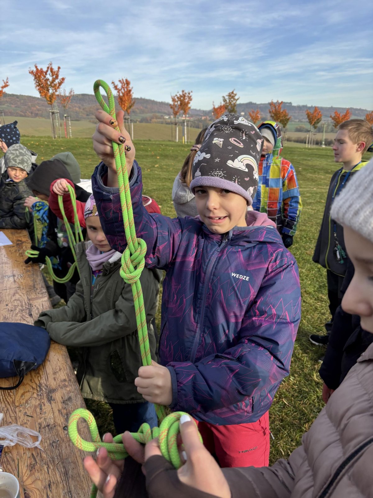 Na třinácti stanovištích jsme plnili úkoly a sezanomovali se se složkamí integrovaného záchranného systému. Poznali jsme, jak náročná je práce hasičů, policistů, záchranářů. Naučili jsme se vázat uzly, zopakovali si pravidla správného třídění odpadů, pracovali s mapou a vyzkoušeli svoji paměť. Den jsme strávili společně s 1.A. Na některých stanovištích jsme vytvořili heterogenní skupiny, abychom mohli našim menším spolužákům pomoci. Na každé disciplíně jsme obdrželi razítko a na závěr i sladkou odměnu.