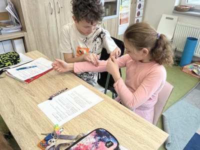 Badatelská hodina byla zaměřena na funkci svalů v lidském těle. Žáci pracovali jako malí vědci – nejprve zjišťovali, zda všechny svaly můžeme ovládat svou vůlí, a poté si pomocí jednoduchých pokusů zkoumali, jak svaly pracují. Měřili si obvod svalů při uvolnění a při zatnutí a porovnávali rozdíly. Díky tomu mohli pozorovat, jak se sval při práci mění. Během aktivity diskutovali o tom, proč svaly potřebujeme a při jakých činnostech je používáme. Hodina vedla žáky k vlastnímu objevování a k lepšímu porozumění fungování lidského těla.