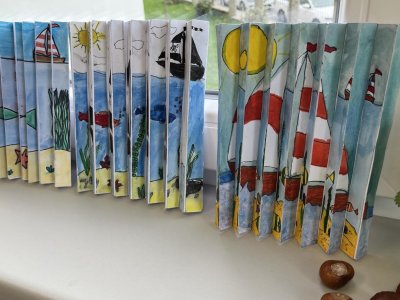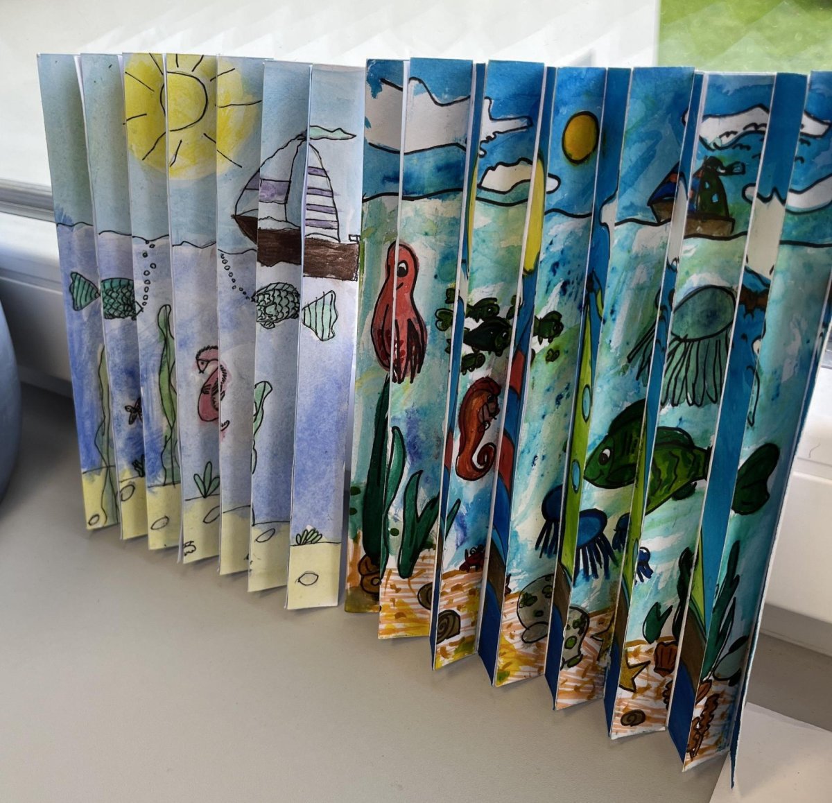 Při výtvarné výchově jsme si vyzkoušeli pracovní postup agamograf neboli roláž. Naše práce dopadly výborně:)