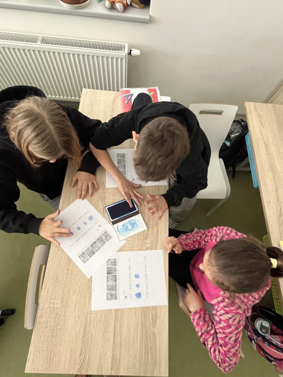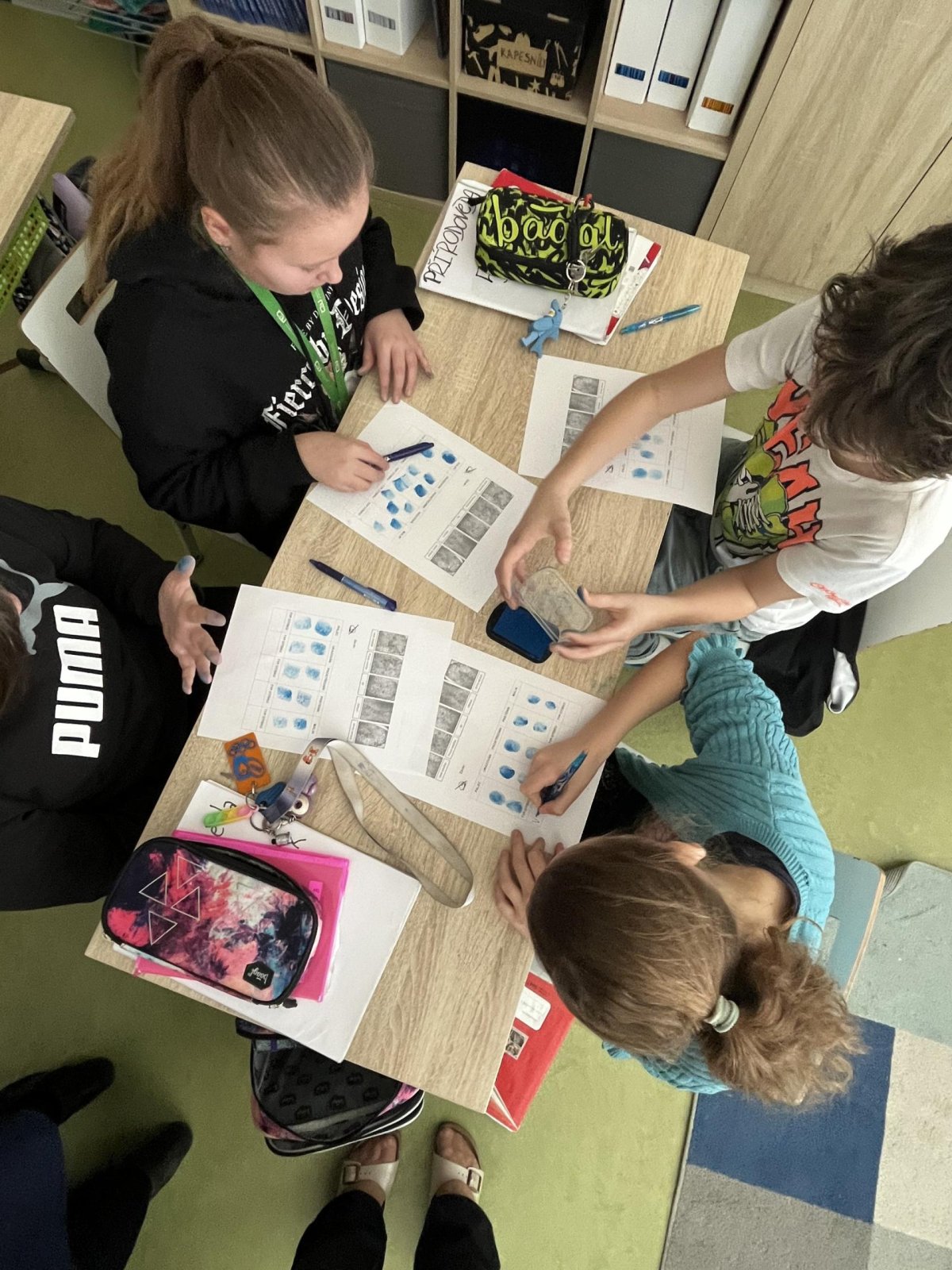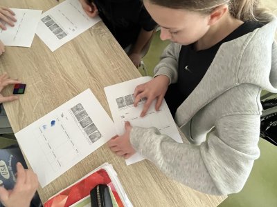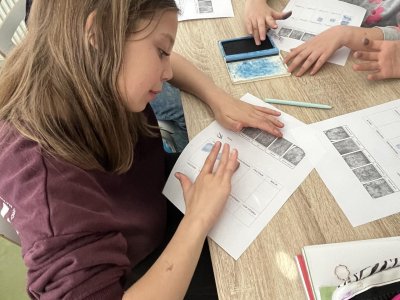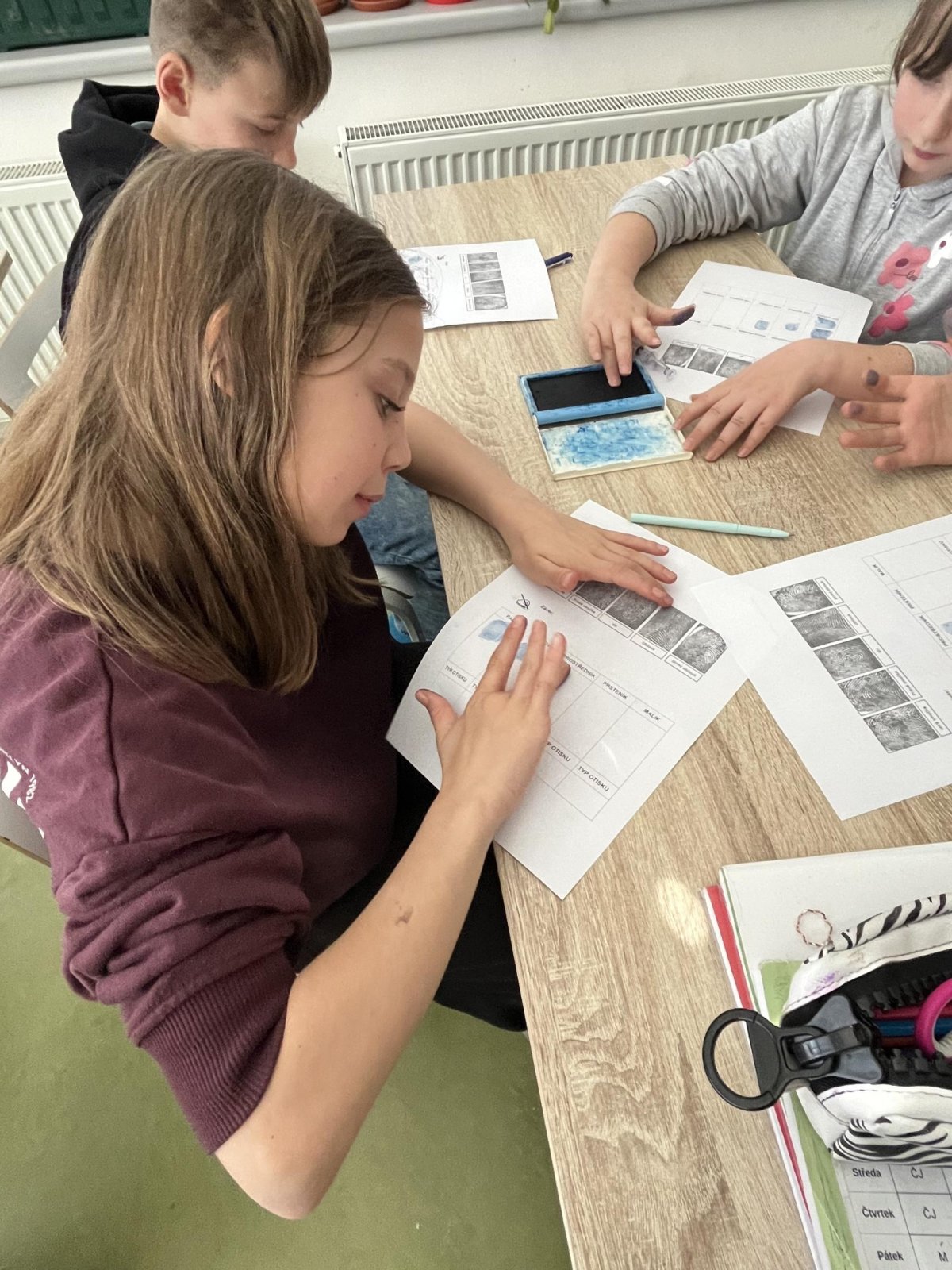 V hodině přírodovědy jsme pracovali badatelsky a zkoumali jsme lidskou kůži. Pomocí inkoustu jsme si vytvořili vlastní otisky prstů, které jsme následně pozorovali. Zjistili jsme, že každý otisk je jedinečný, skládá se z různých linií a tvarů. Snažili jsme se své otisky přiřadit k základním typům papilárních linií. Díky této aktivitě jsme lépe pochopili stavbu kůže i význam otisků prstů v praxi.