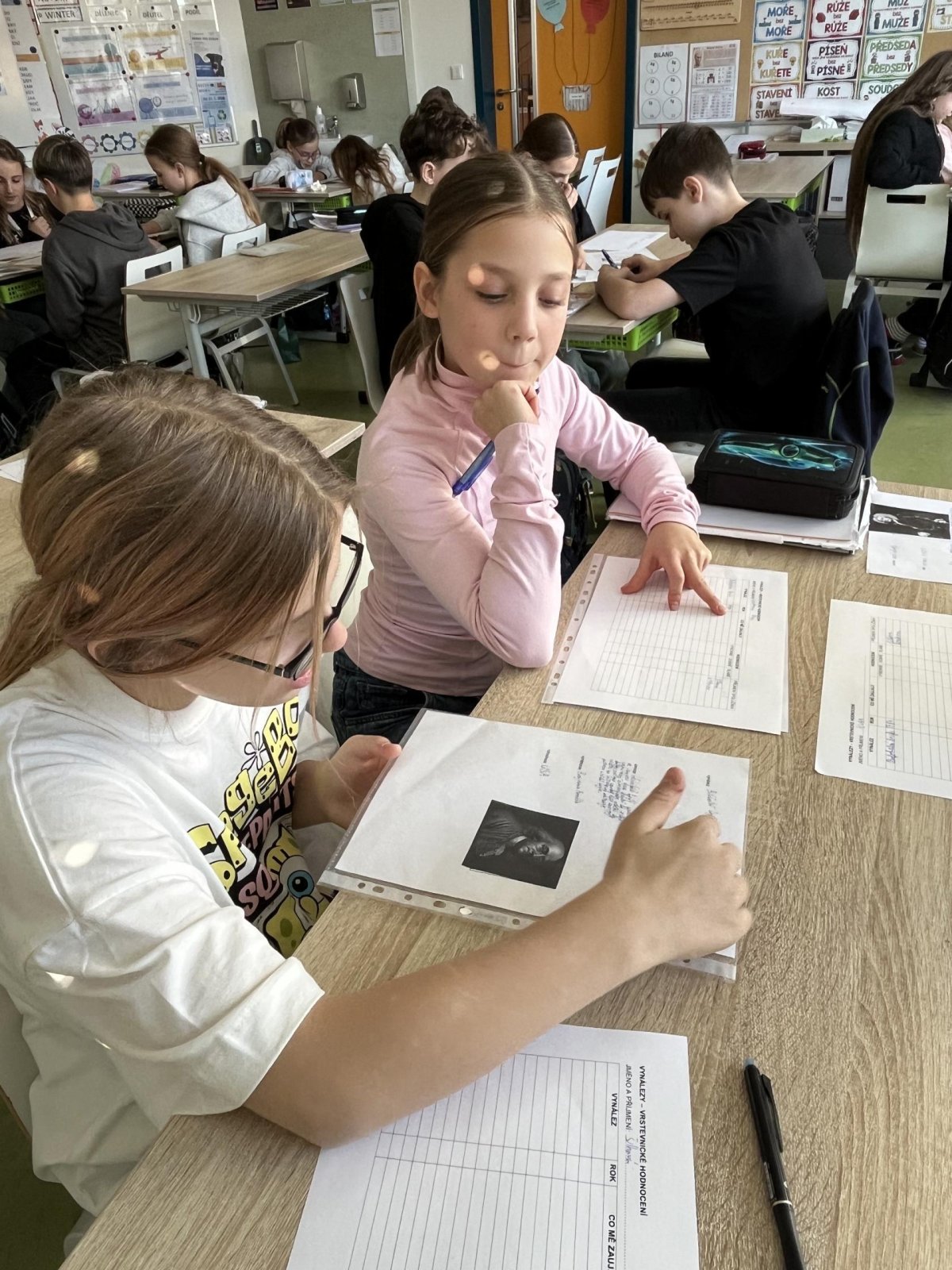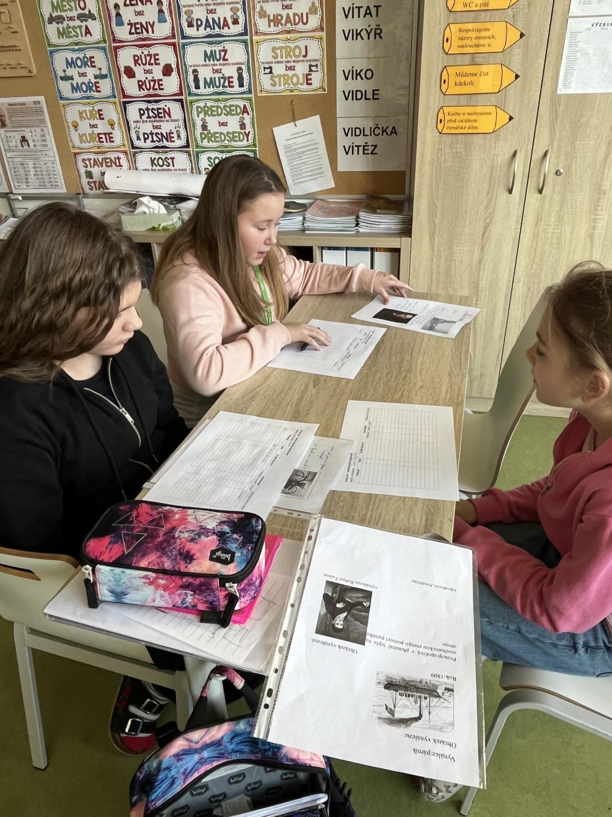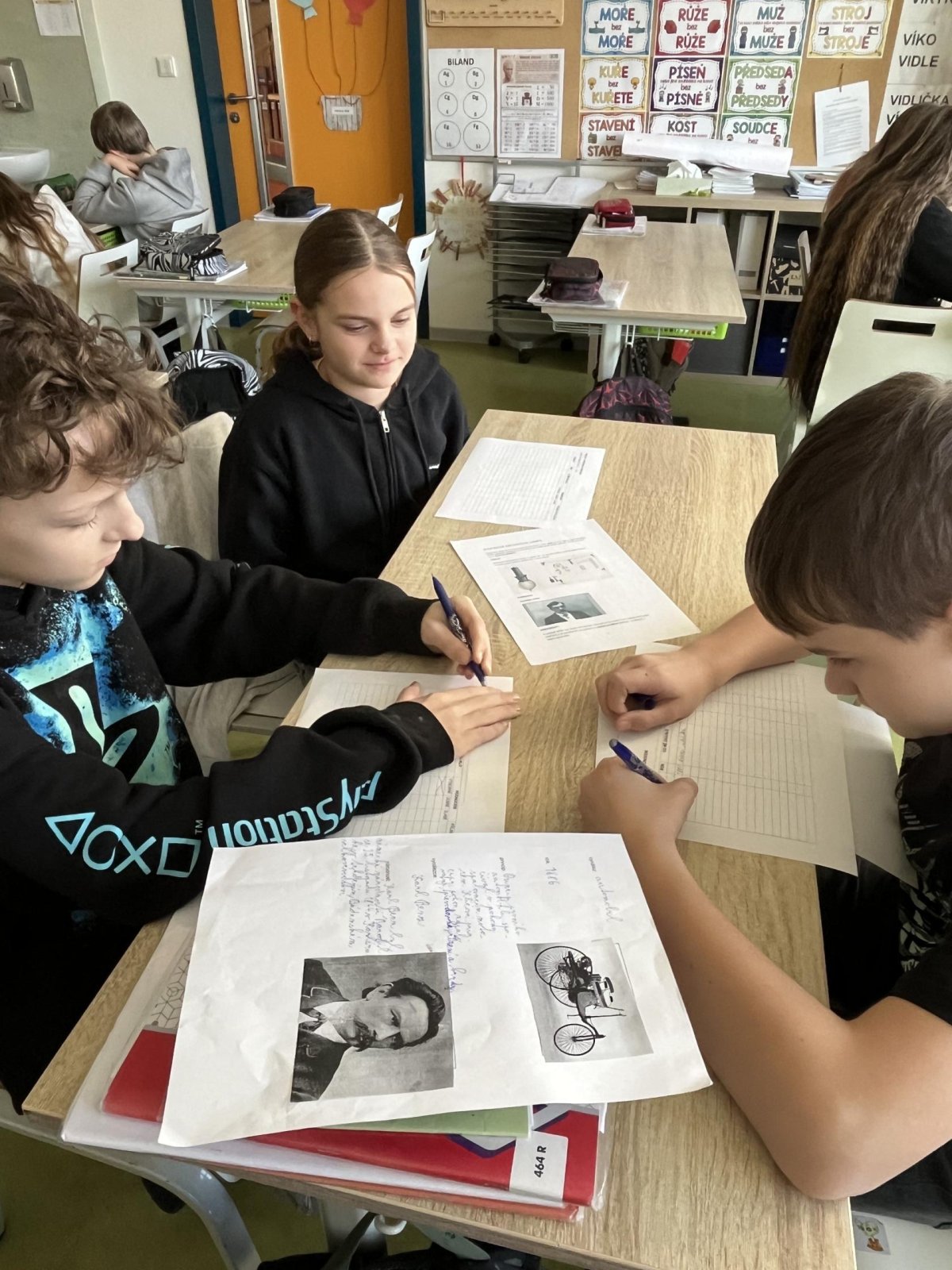 Žáci si v hodině vlastivědy předávali získané informace o vybraném vynálezu a podle stanovených kritérií vzájemně svou prezentaci hodnotili:)
