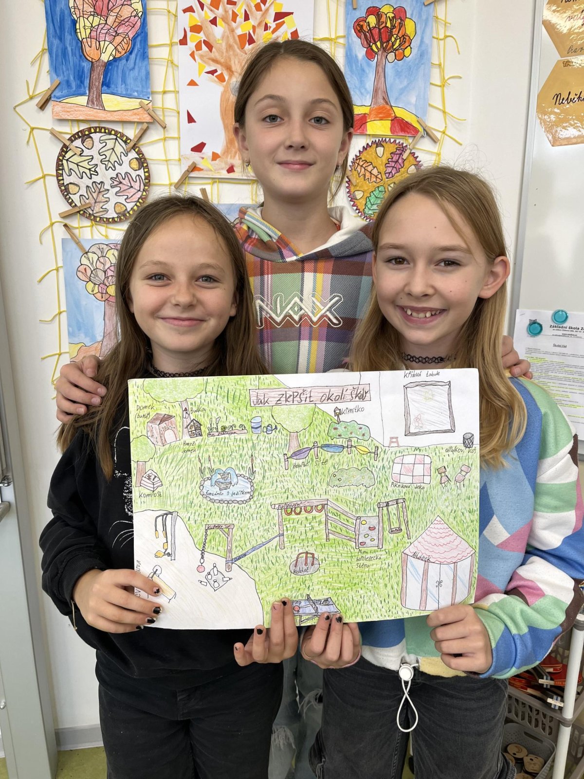 Na třídnických hodinách jsme se zamýšleli, jak zlepšit okolí školy a využít prostory k učení a zábavě našich dětí. Děti měly velmi pěkné nápady, které jsme ztvárnili. Věřím, že se projekt vydaří a naše nápady se stanou reálnými.