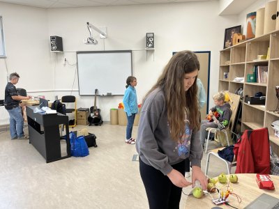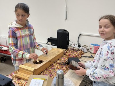 Dnes jsme absolvovali program - neuvěřitelné hudební nástroje. Jednalo se o hudební dílnu s netradičními a neznámými hudebními nástroji. Děti si prakticky vyzkoušely všechny předvedené nástroje.