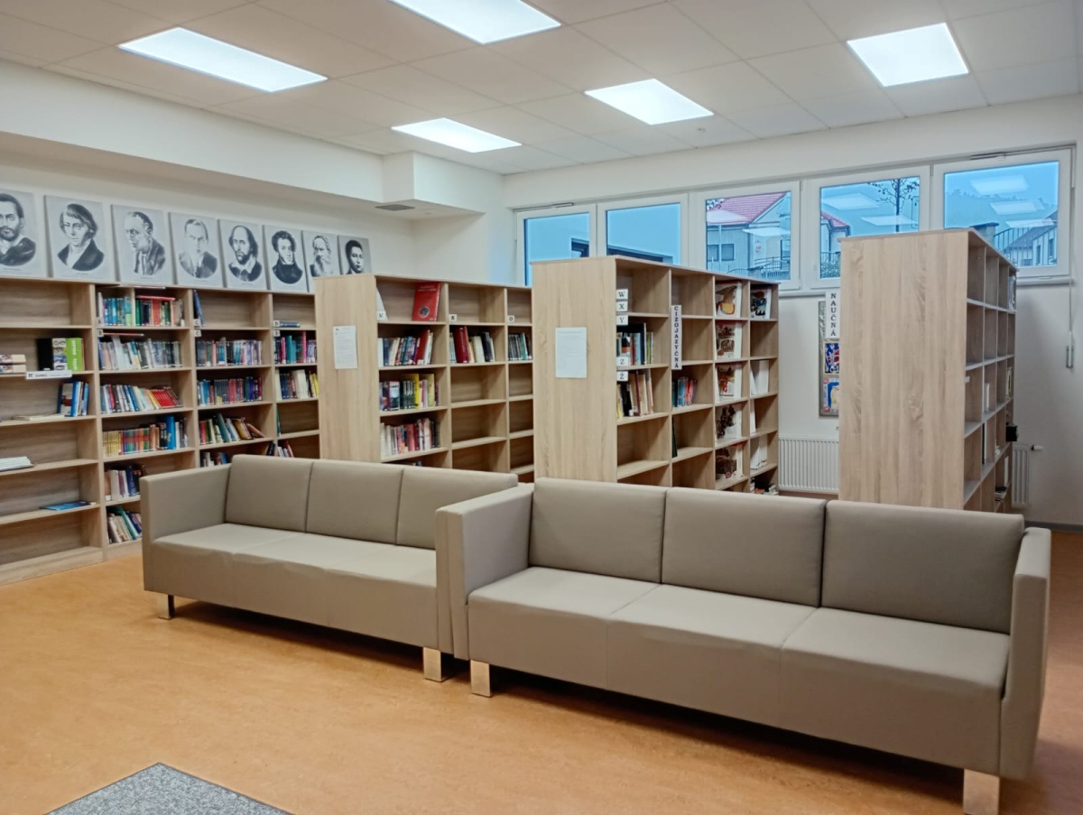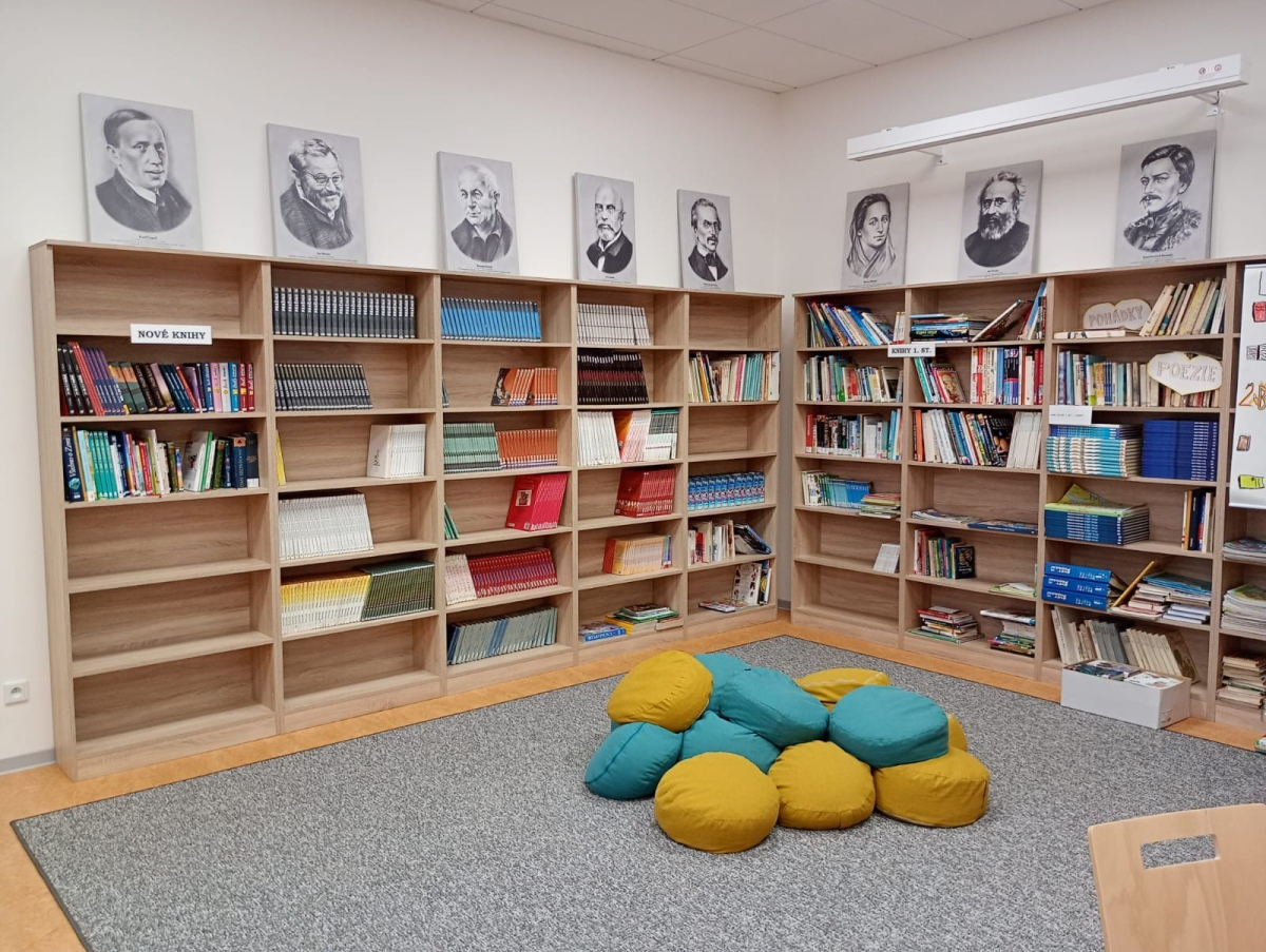 Knihovna nabízí spoustu titulů, které zaujmou začínající i zkušené čtenáře. V klidném prostředí knihovny s relaxační zónou se mohou žáci ponořit do děje vybrané knihy a strávit tak příjemně volný čas, třeba mezi dopoledním a odpoledním vyučováním nebo při čekání na autobus. Knihy si mohou půjčit bezplatně i domů.