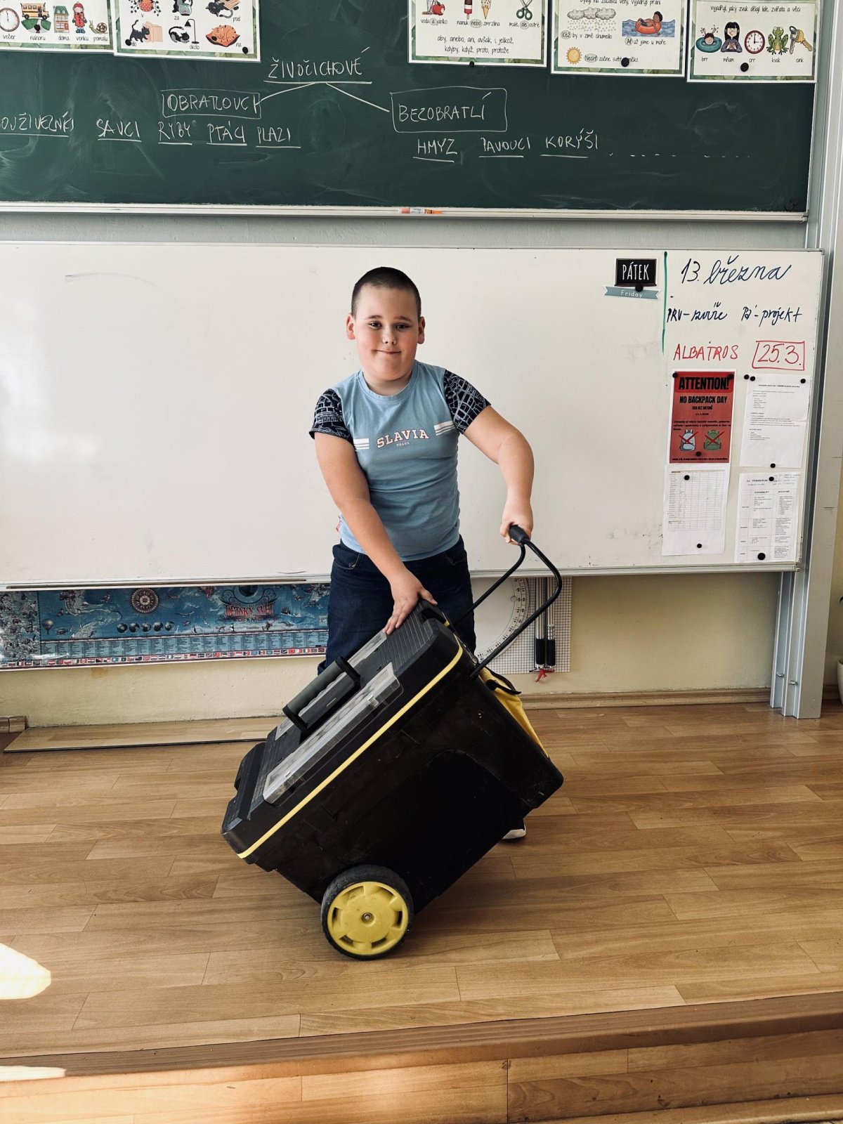 Na naší základní škole se uskutečnil tematický den No Backpack Day. Žáci si v tento den přinesli své školní pomůcky v různých originálních a netradičních předmětech místo běžných batohů. Cílem akce bylo zpestřit školní den, podpořit kreativitu žáků a vytvořit příjemnou atmosféru ve škole.