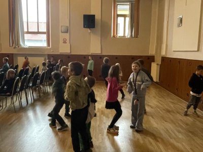 Ve čtvrtek 25. září 2025 se děti ze školní družiny a školního klubu zúčastnily divadelního představení „Veselé písničky“ ve Společenském domě ve Zdicích.