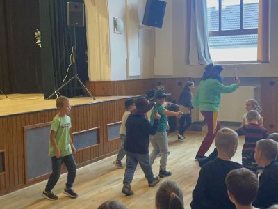 Celé vystoupení přineslo dětem spoustu radosti, smíchu i společného zpívání a na představení budou jistě dlouho vzpomínat.