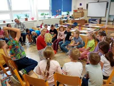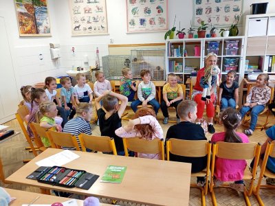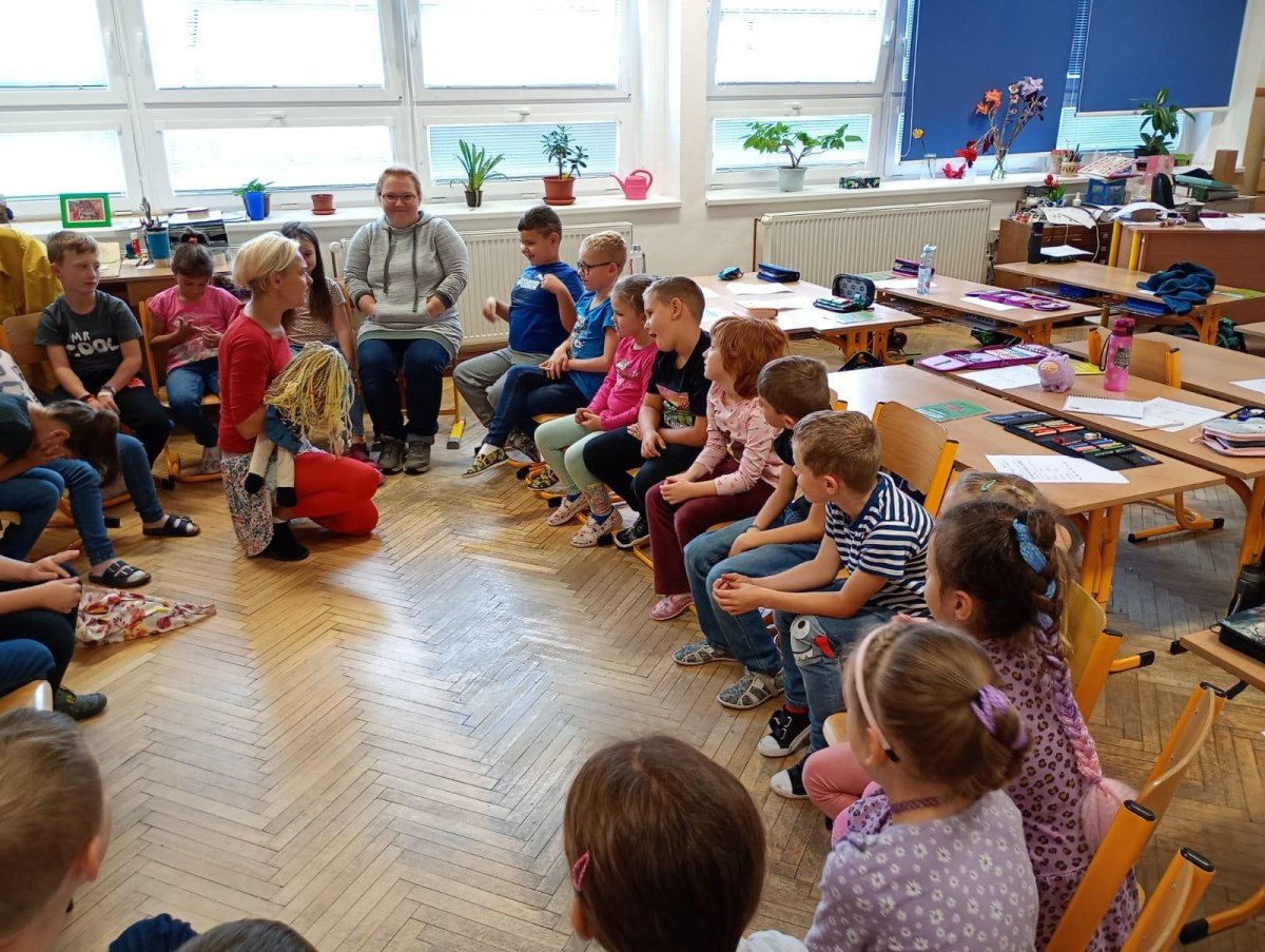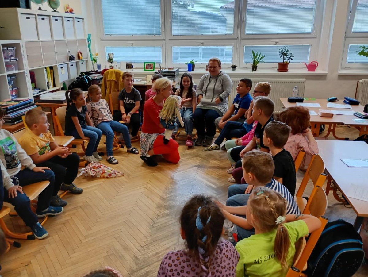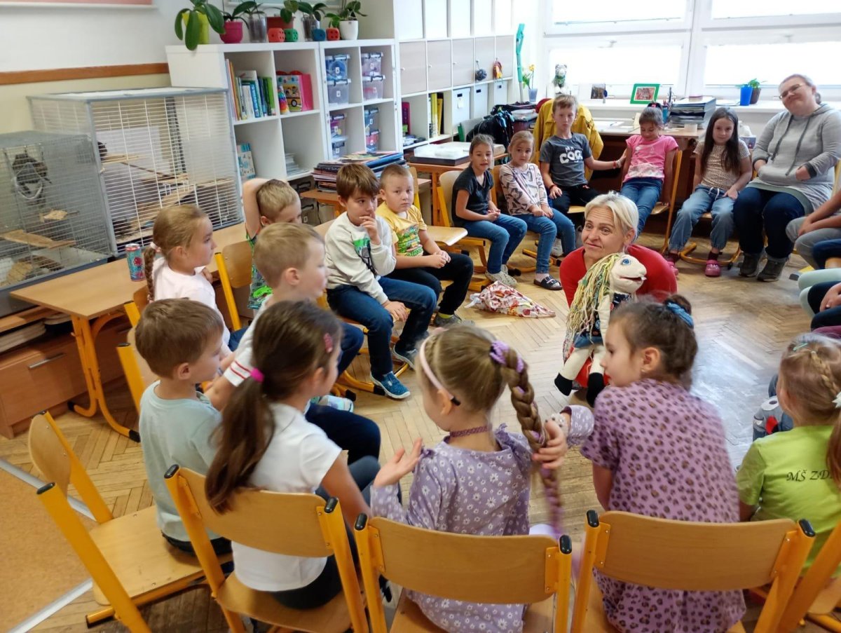 Ve středu nás ve třídě navštívila paní učitelka s Janičkou. S dětmi si povídala a Janička jí neustále skákala do řeči a křičela. Děti pak měly popsat, jestli jim to bylo příjemné. Pokud ne, proč. Přestože dětem hluk vadil a krásně popsaly proč, samy ho ve třídě dál vytvářejí.