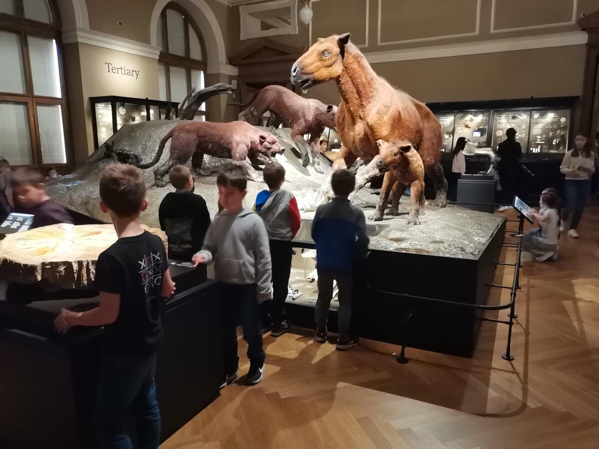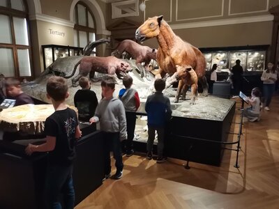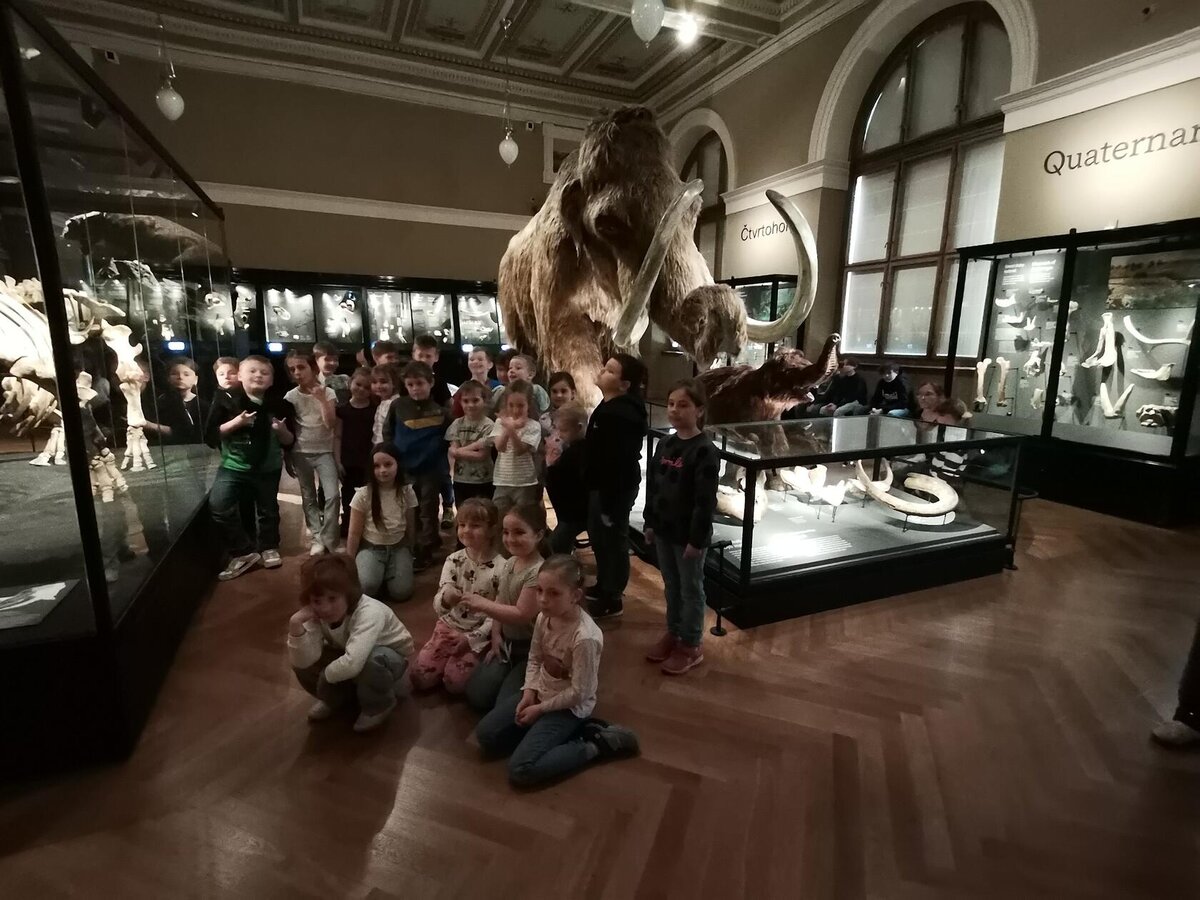 Při dnešní výpravě do Národního muzea jsme s dětmi navštívili expozici, ve které jsme si mohli prohlédnout, jak vypadal život na našem území před mnoha milióny let. Od malých zkamenělých larev trilobitů až po obřího amonita a zcela nové modely pravěkých zvířat v životní velikosti. Zavítali jsme i mezi nejkrásnější a nejzajímavější minerály. Svoji návštěvu jsme zpestřili výstupem do kupole, ze které byl nádherný výhled do okolí muzea. Na závěr nechyběla nezbytná zastávka v muzejním obchůdku se suvenýry.