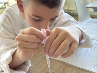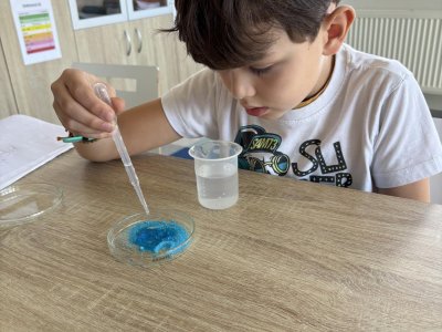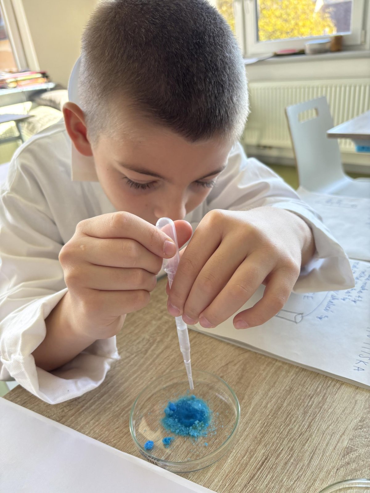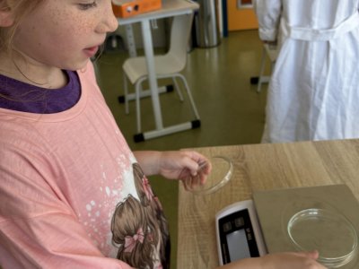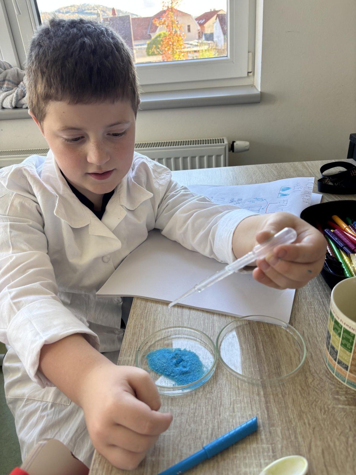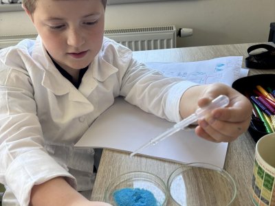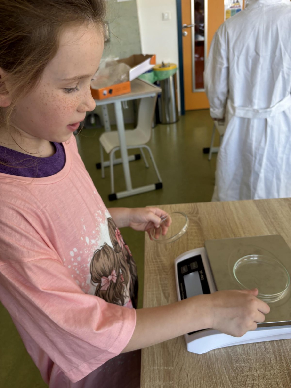 Na přírodovědném kroužku jsme pracovali s váhou. Nejprve jsme se naučili, jak správně postupovat při vážení. Následně jsme zkoušeli odhadnout, kolik g váží materiál. Seznámili jsme se s chemickým nádobím - Petriho miskou. Nakonec jsme odvažovali jednu lžičku skalice modré a následně vytvořili roztok. Zformulovali jsme hypotézu, jak bude vypadat Petriho miska za týden. Na příštím přírodovědném kroužku navrhovanou hypotézu potvrdíme či vyvrátíme.