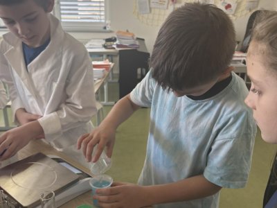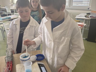 Na přírodovědném kroužku jsme si ukázali, jak může vypadat buňka. Po kápnutí roztoku do jiného prostředí jsme vytvořili měchýřek, který se zvětšoval, rostl. Nakonec se praskl. Žáci svá pozorování zaznamenali do PL.