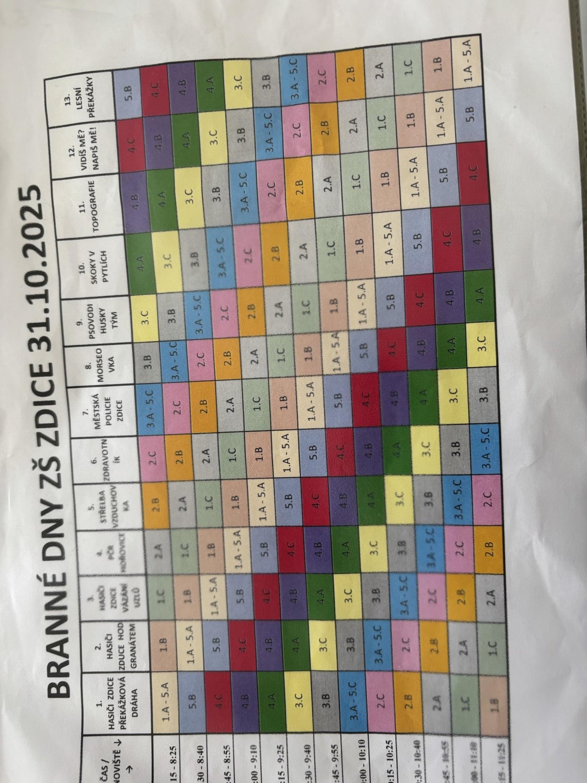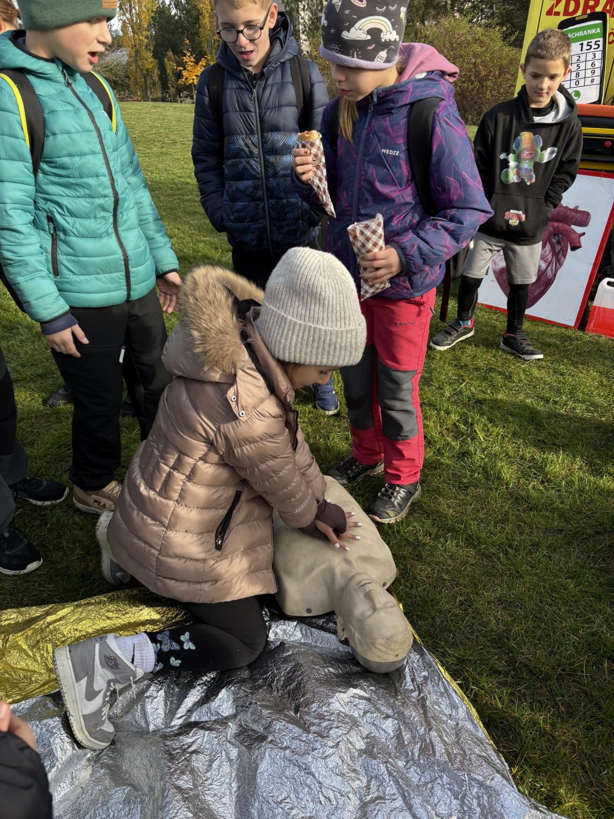 Na třinácti stanovištích jsme plnili úkoly a sezanomovali se se složkamí integrovaného záchranného systému. Poznali jsme, jak náročná je práce hasičů, policistů, záchranářů. Naučili jsme se vázat uzly, zopakovali si pravidla správného třídění odpadů, pracovali s mapou a vyzkoušeli svoji paměť. Den jsme strávili společně s 1.A. Na některých stanovištích jsme vytvořili heterogenní skupiny, abychom mohli našim menším spolužákům pomoci. Na každé disciplíně jsme obdrželi razítko a na závěr i sladkou odměnu.
