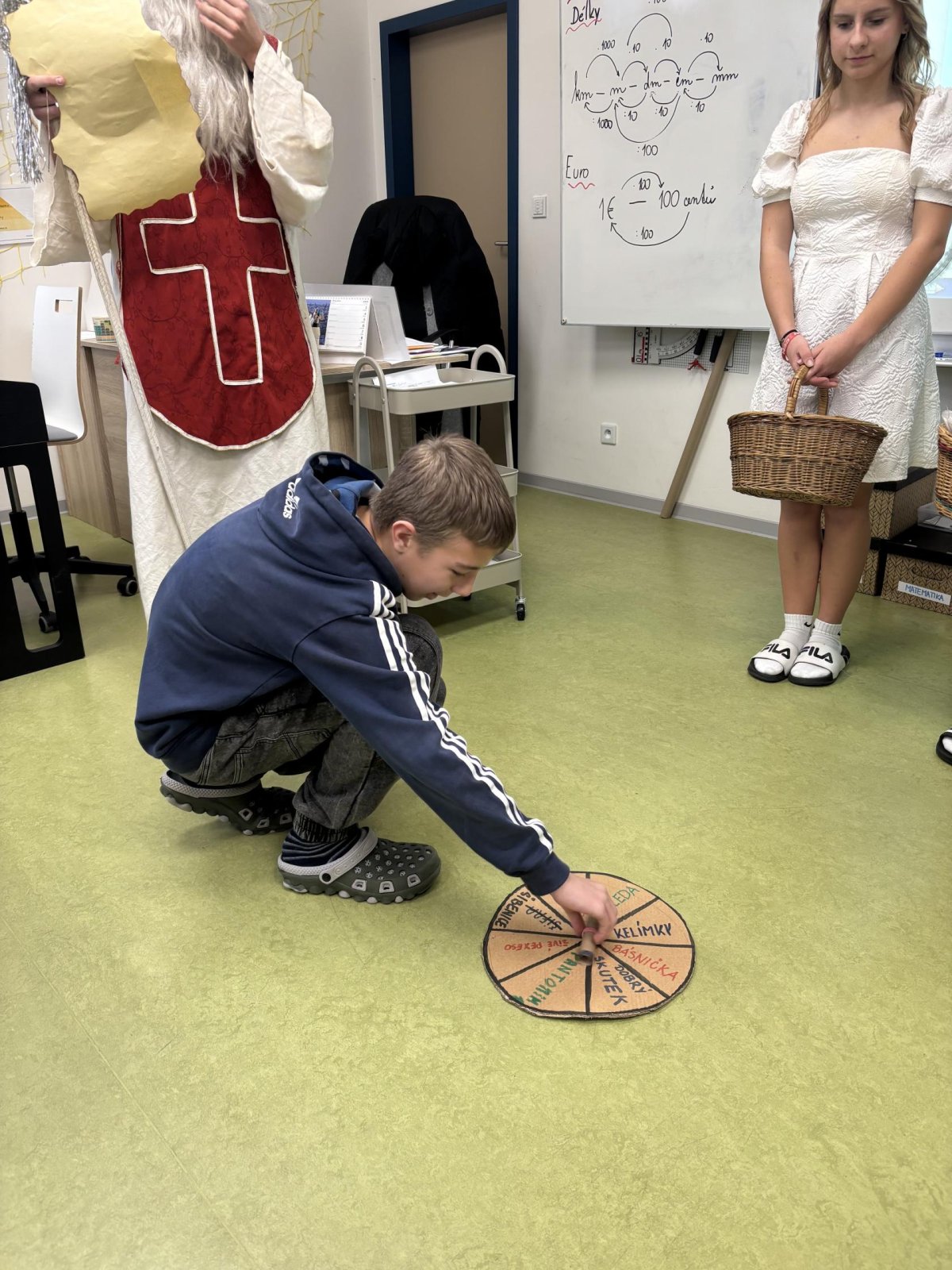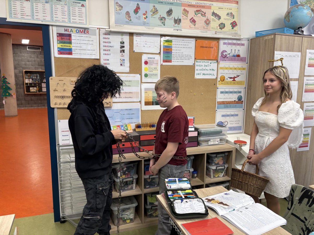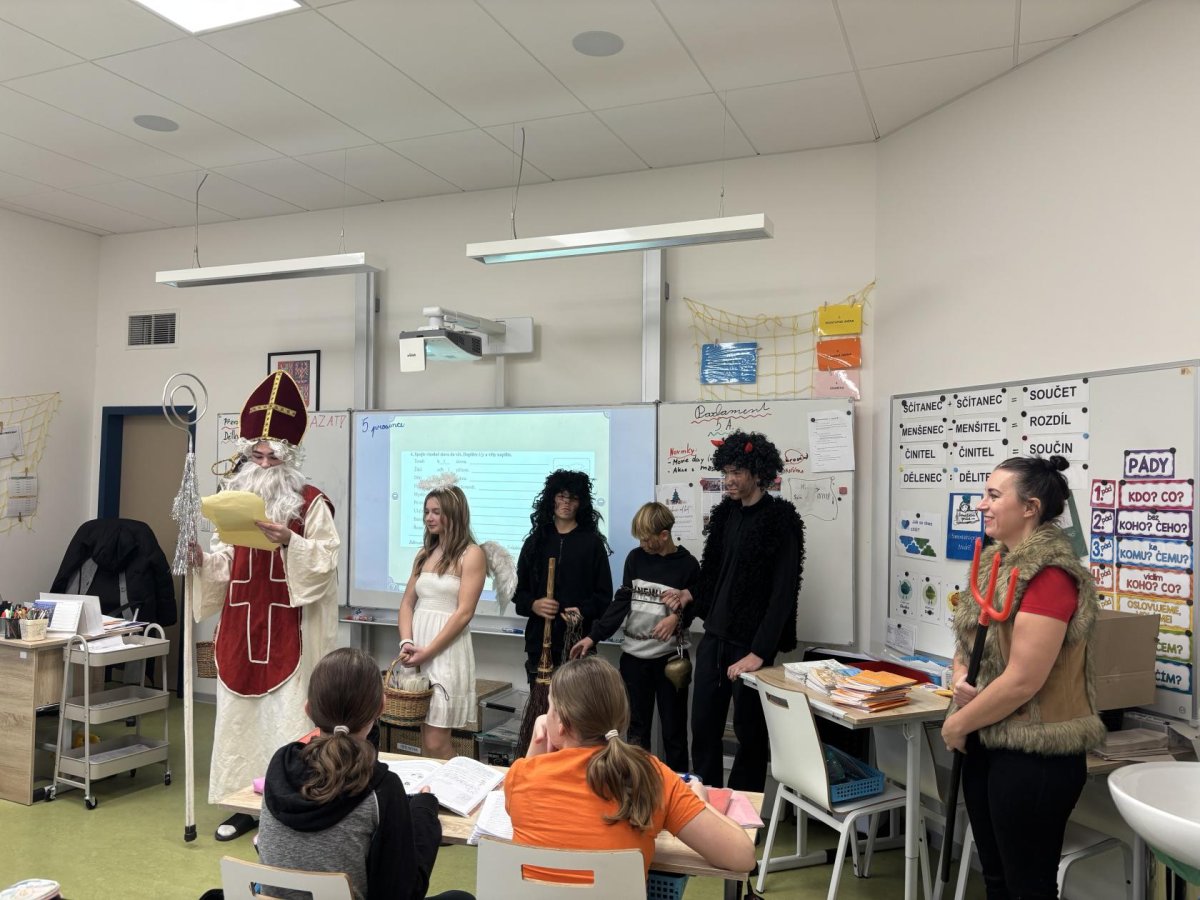 Žáci z 9. ročníků si pro nás připravili mikuláškou nadílku. Abychom si sladkosti zasloužili, museli jsme splnit "vytočené úkoly".