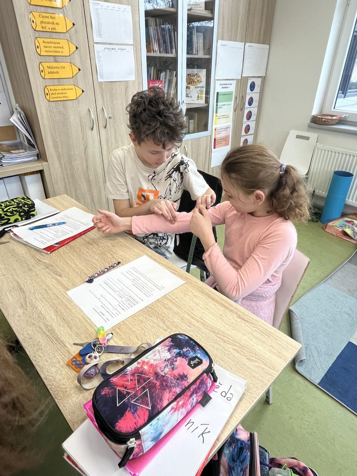 Badatelská hodina byla zaměřena na funkci svalů v lidském těle. Žáci pracovali jako malí vědci – nejprve zjišťovali, zda všechny svaly můžeme ovládat svou vůlí, a poté si pomocí jednoduchých pokusů zkoumali, jak svaly pracují. Měřili si obvod svalů při uvolnění a při zatnutí a porovnávali rozdíly. Díky tomu mohli pozorovat, jak se sval při práci mění. Během aktivity diskutovali o tom, proč svaly potřebujeme a při jakých činnostech je používáme. Hodina vedla žáky k vlastnímu objevování a k lepšímu porozumění fungování lidského těla.