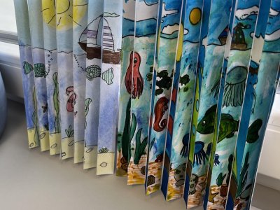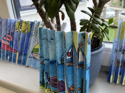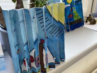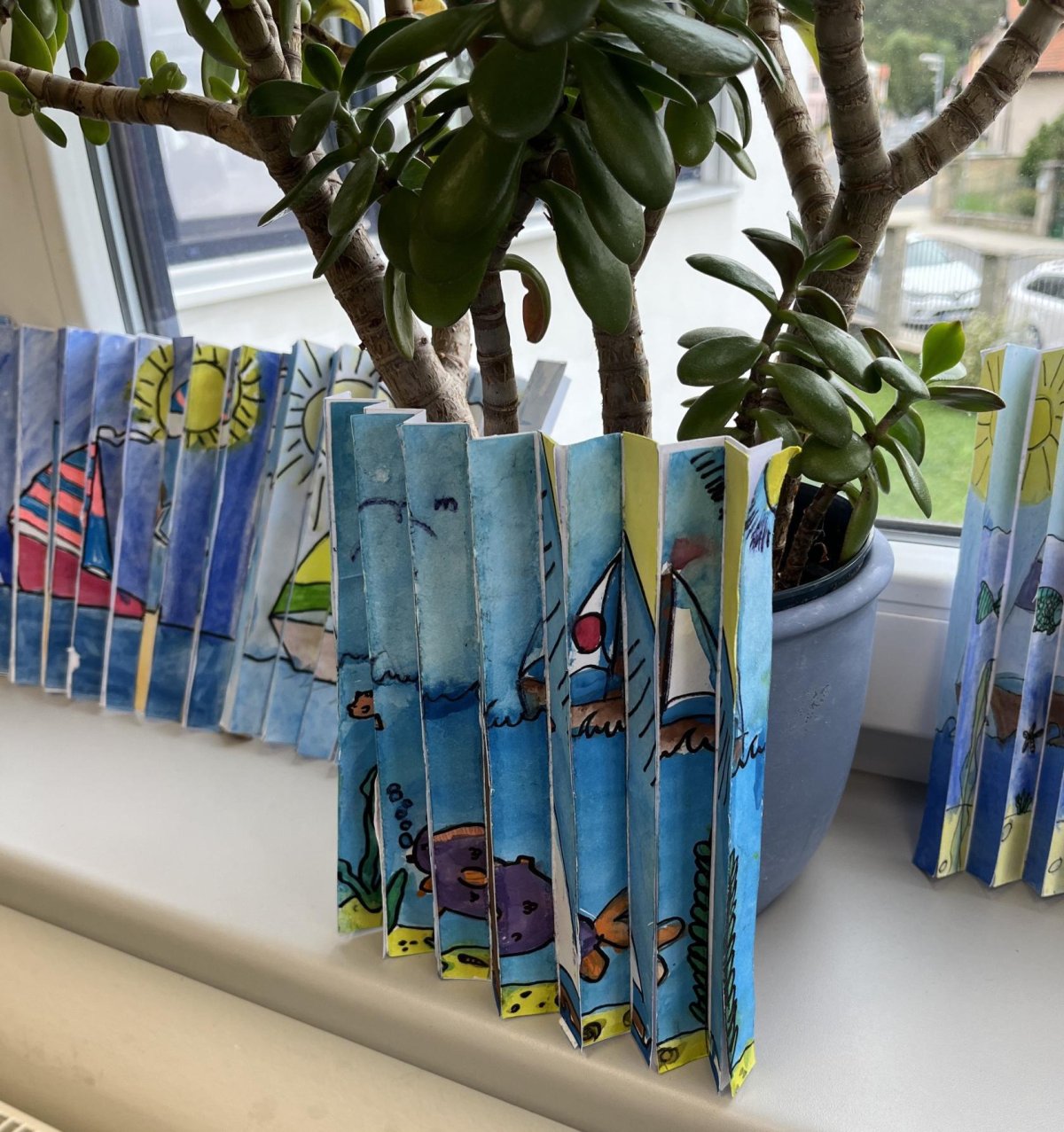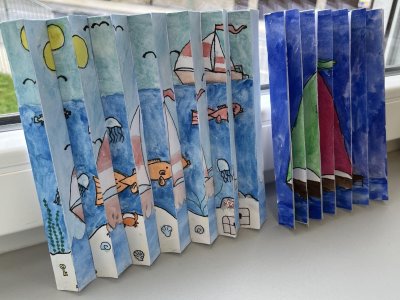 Při výtvarné výchově jsme si vyzkoušeli pracovní postup agamograf neboli roláž. Naše práce dopadly výborně:)