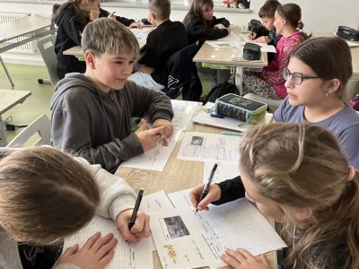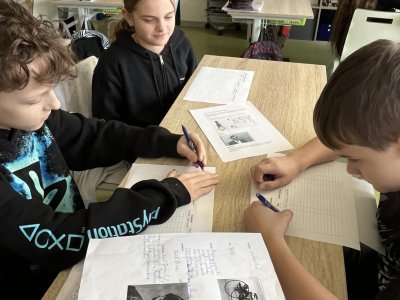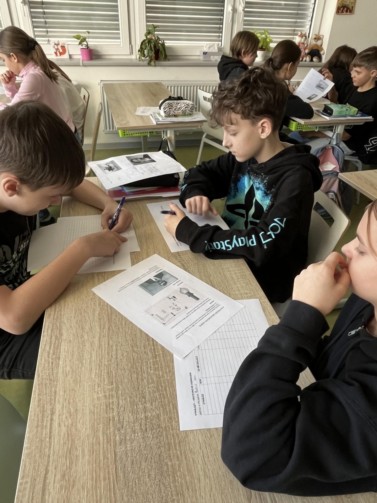 Žáci si v hodině vlastivědy předávali získané informace o vybraném vynálezu a podle stanovených kritérií vzájemně svou prezentaci hodnotili:)