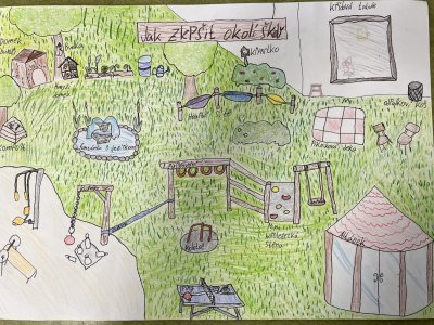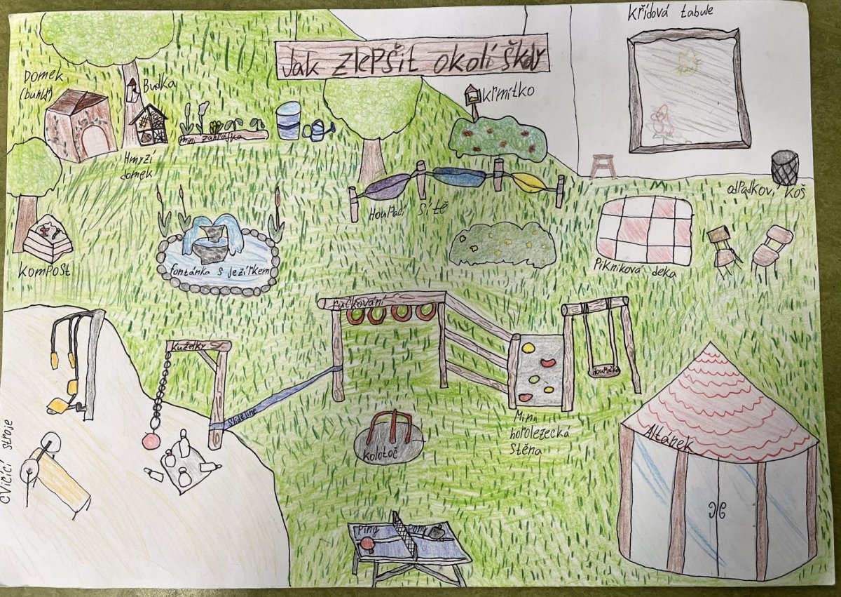 Na třídnických hodinách jsme se zamýšleli, jak zlepšit okolí školy a využít prostory k učení a zábavě našich dětí. Děti měly velmi pěkné nápady, které jsme ztvárnili. Věřím, že se projekt vydaří a naše nápady se stanou reálnými.